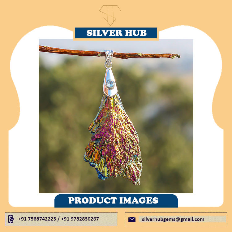 จี้พลอย925ธรรมชาติทำจากแร่เงินสเตอริ่งทำด้วยมือจี้เครื่องประดับที่ทำด้วยมือซึ่งแต่ละชิ้นเป็นงานศิลปะ