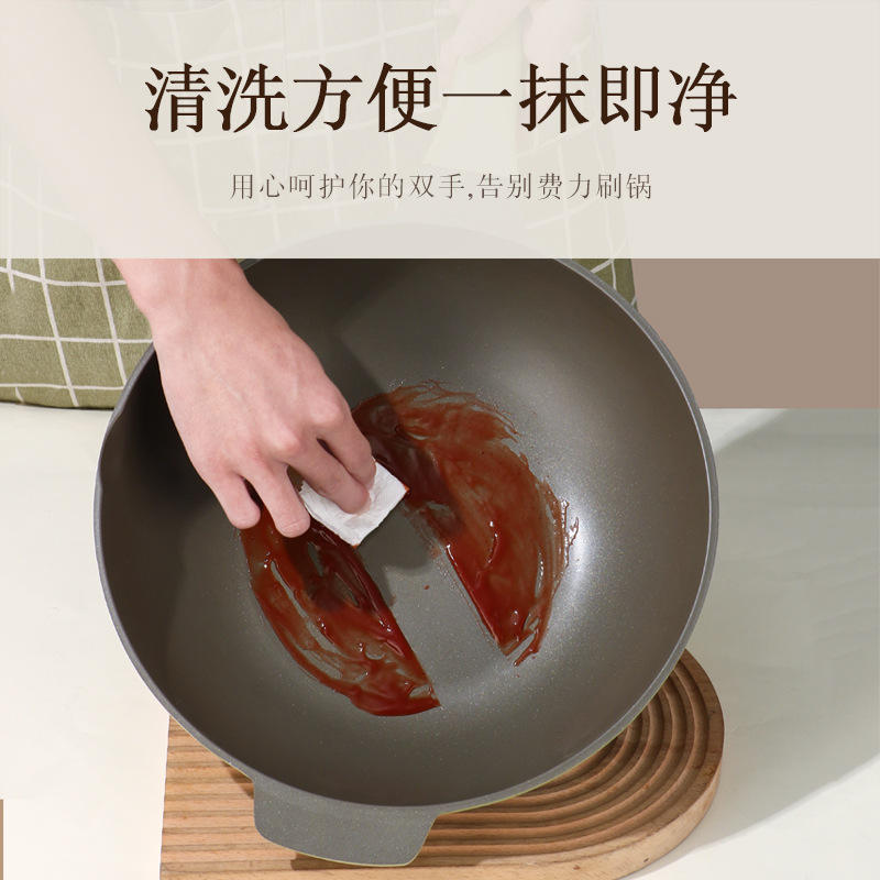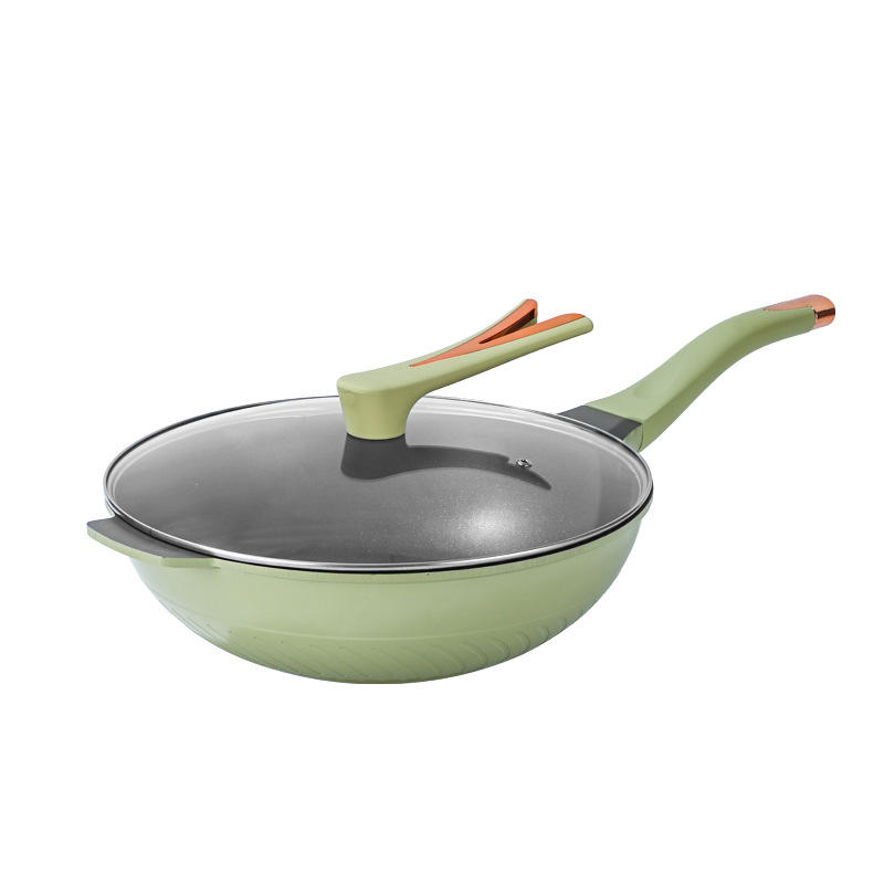 กระทะไทเทเนียมเคลือบกันติด ทรงกลม สีเขียว ใช้กับเตาแม่เหล็กไฟฟ้าได้ ปรุงอาหารไร้ควัน