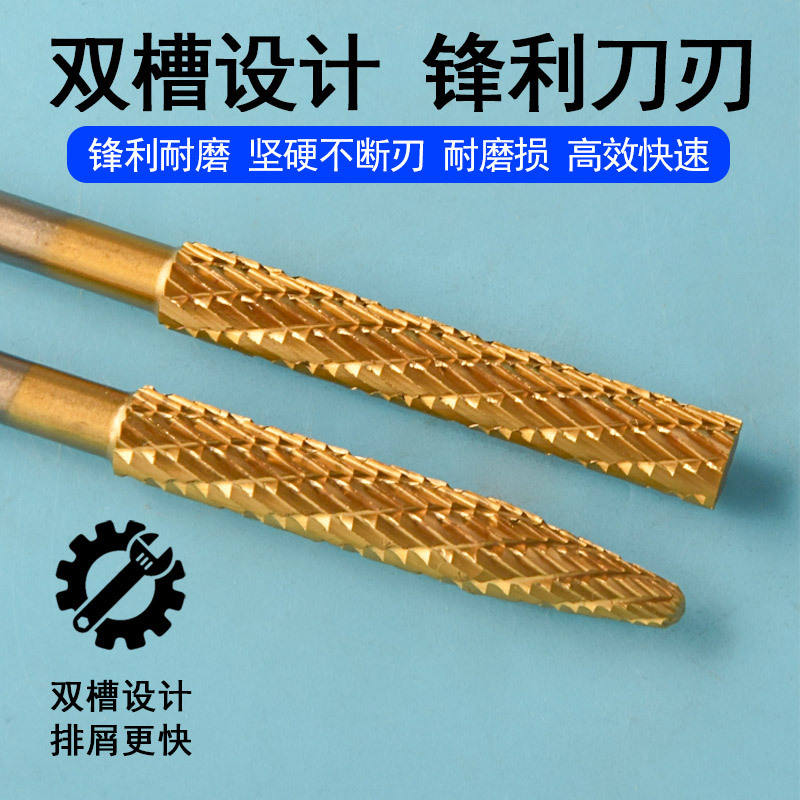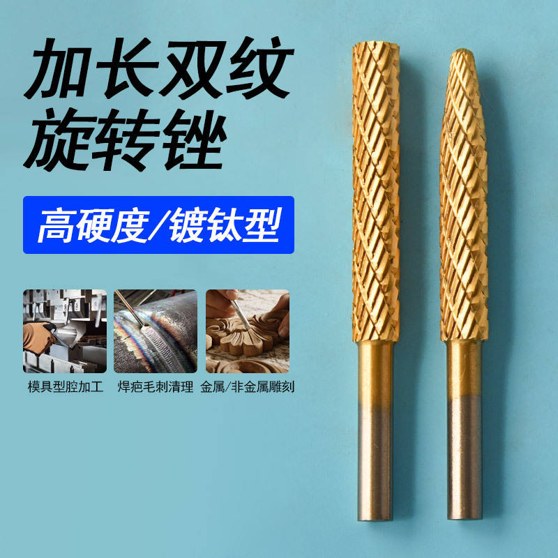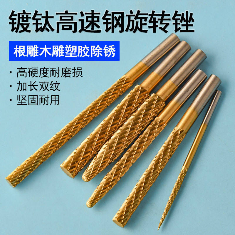 ตะไบโรตารี่เคลือบไทเทเนียม HSS ขนาด 6 มม. หัวขัดไม้ หัวเจียรสำหรับสว่านไฟฟ้า สำหรับงานกัดโลหะอ่อนและโลหะผสม