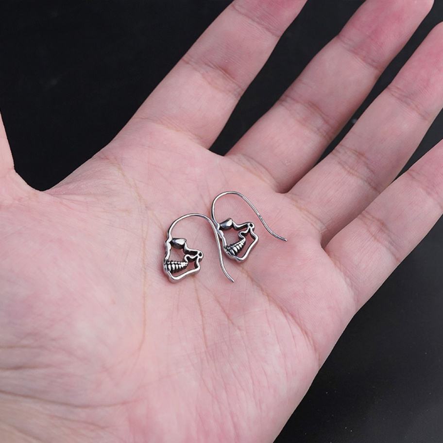 ต่างหูสแตนเลสชุบไทเทเนียมสำหรับผู้หญิง ดีไซน์หัวกะโหลก ขายส่งราคาถูก