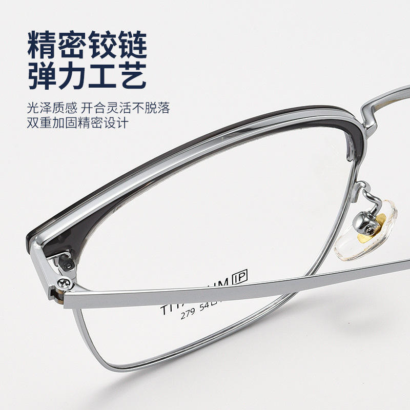 แว่นตาไทเทเนียมทรงสี่เหลี่ยมครึ่งกรอบ 279 5419 สไตล์ลำลองสำหรับผู้ชายแบบโปร่งใส