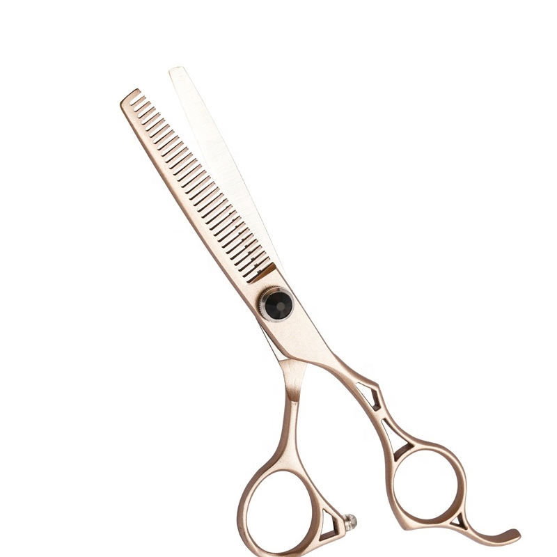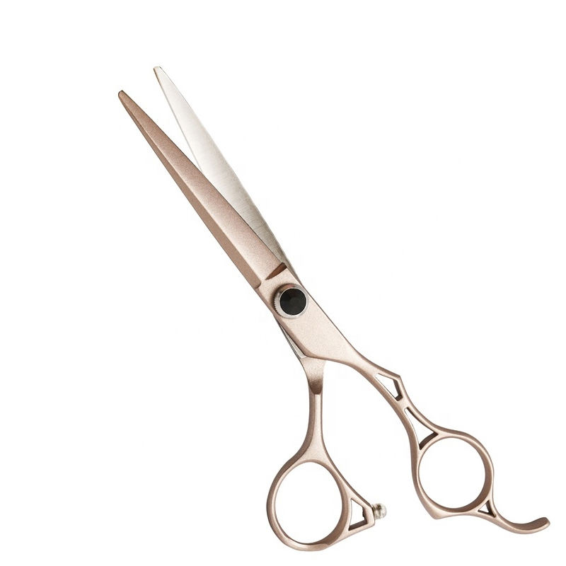 กรรไกรตัดผมไทเทเนียมสีโรสโกลด์ สำหรับคนถนัดขวา ใบมีดคม ด้ามยาว
