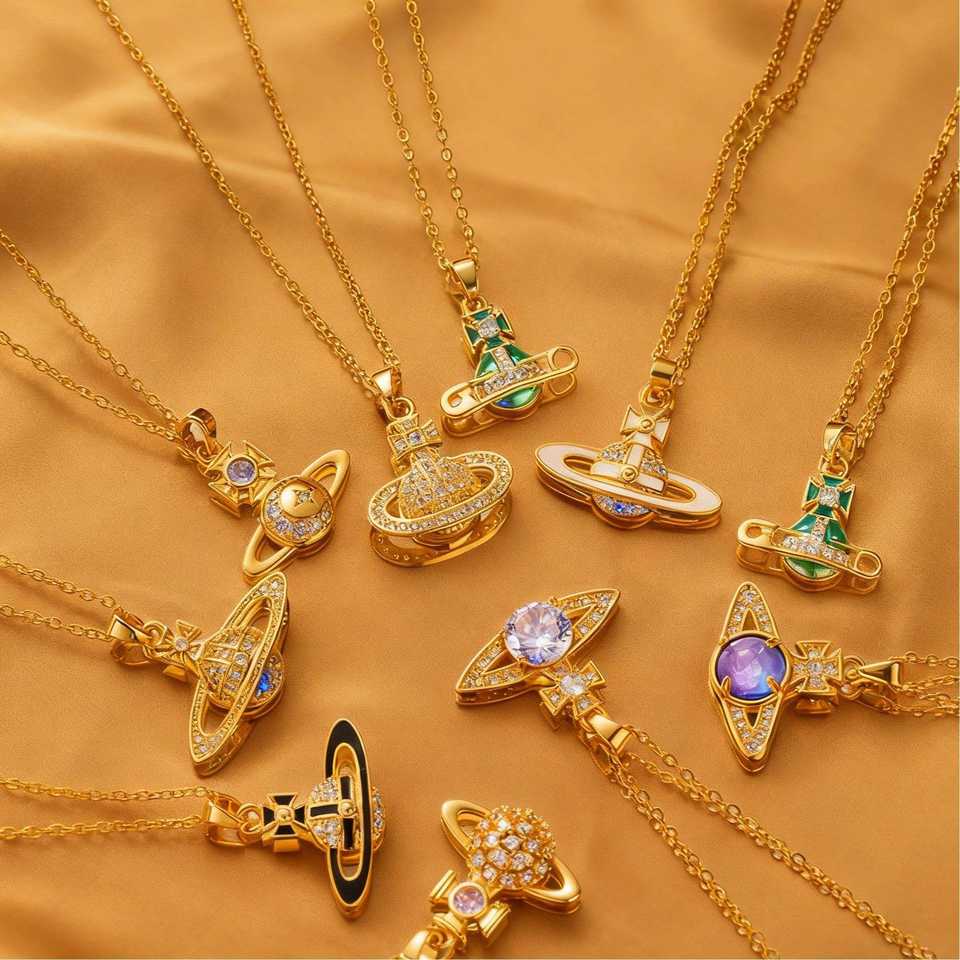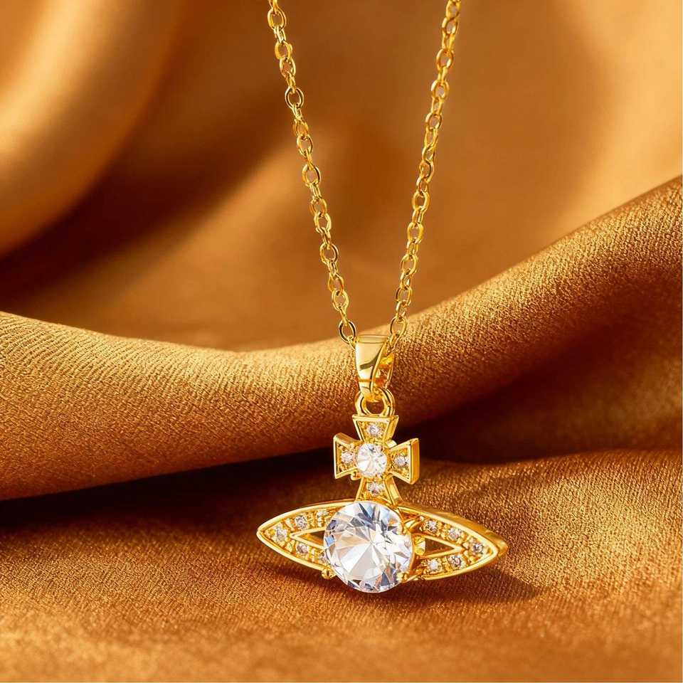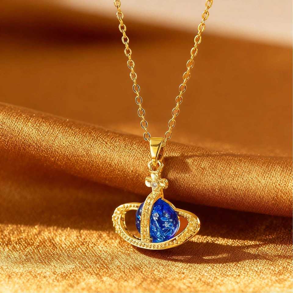 สร้อยคอไทเทเนียมรูปดาวเสาร์ ประดับเพชรเต็มเม็ด ฝังแบบไมโครอินเลย์ ดีไซน์จักรพรรดินี ดาวเคราะห์ สไตล์ยุโรปอเมริกัน ขายดีมาก ประกายวิบวับด้วยเพชรซิร์คอน ดีไซน์สปอร์ต