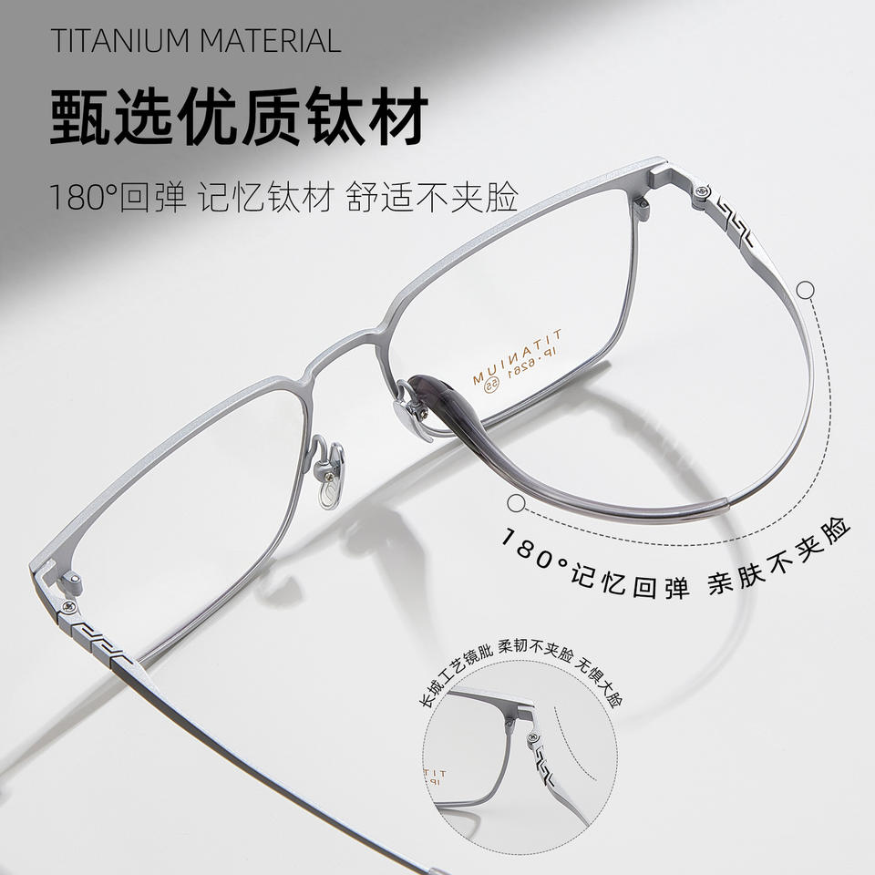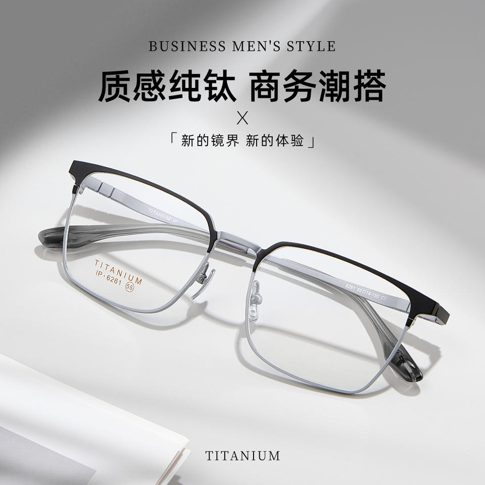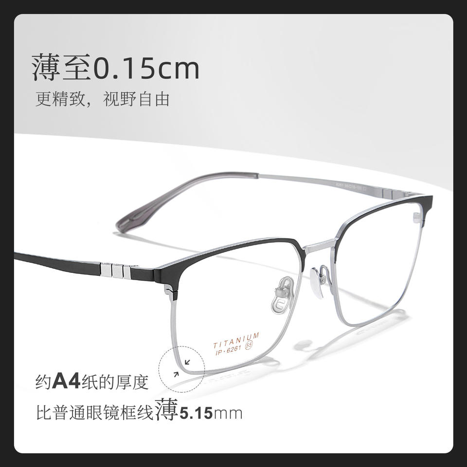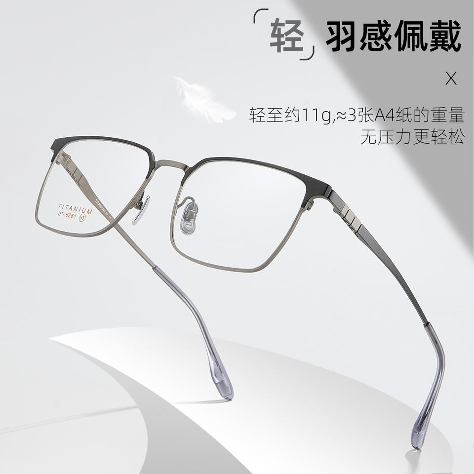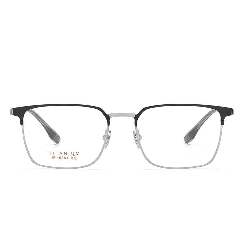 กรอบแว่นตาไทเทเนียมทรงสี่เหลี่ยมสำหรับผู้ชาย 6261 เลนส์อะคริลิคแบบเต็มกรอบน้ำหนักเบาสไตล์ธุรกิจ