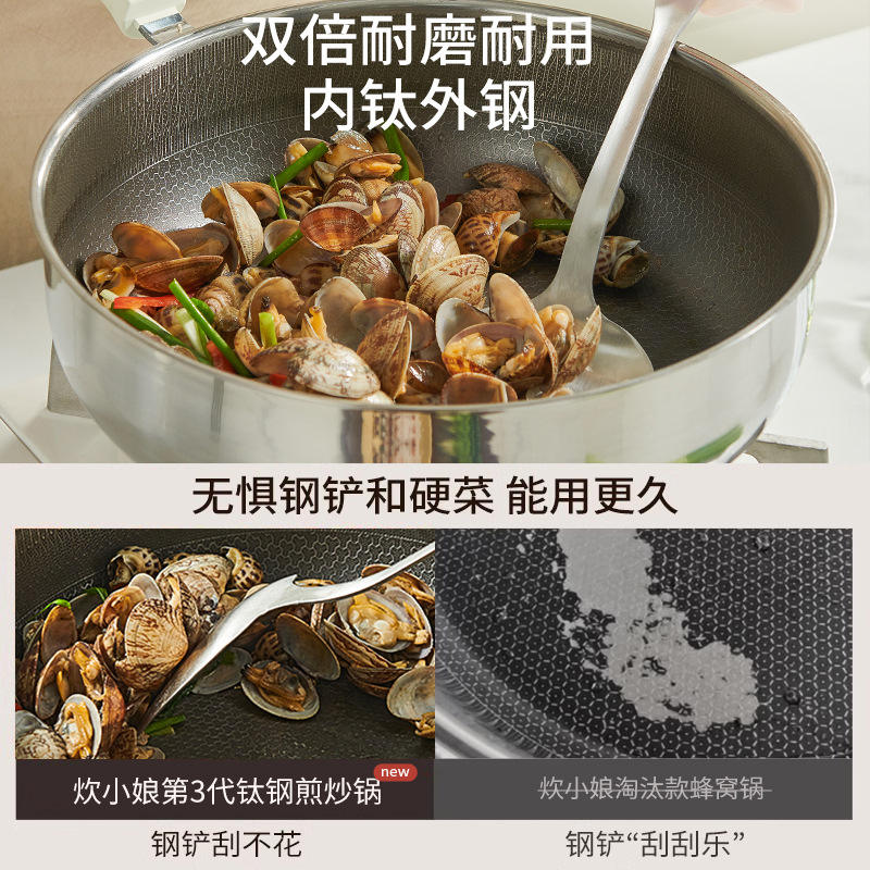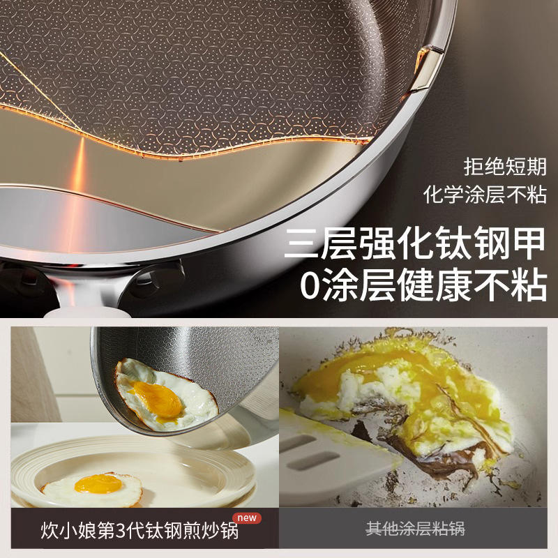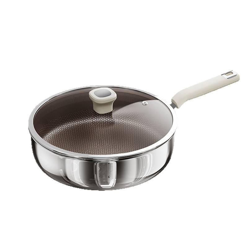 กระทะทอดสเตนเลสไทเทเนียมเคลือบผิวแบบรังผึ้ง ขนาด 30 ซม. สำหรับทำอาหารในครัวเรือน กระทะสเต็ก