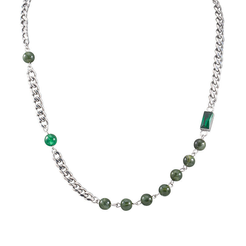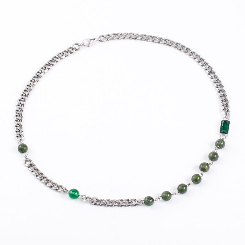 สร้อยคอคิวบาประดับคริสตัลอาเกตสีเขียวประดับลูกปัดเหล็กไทเทเนียมสำหรับสวมใส่ทุกวันฤดูร้อนปี 2022