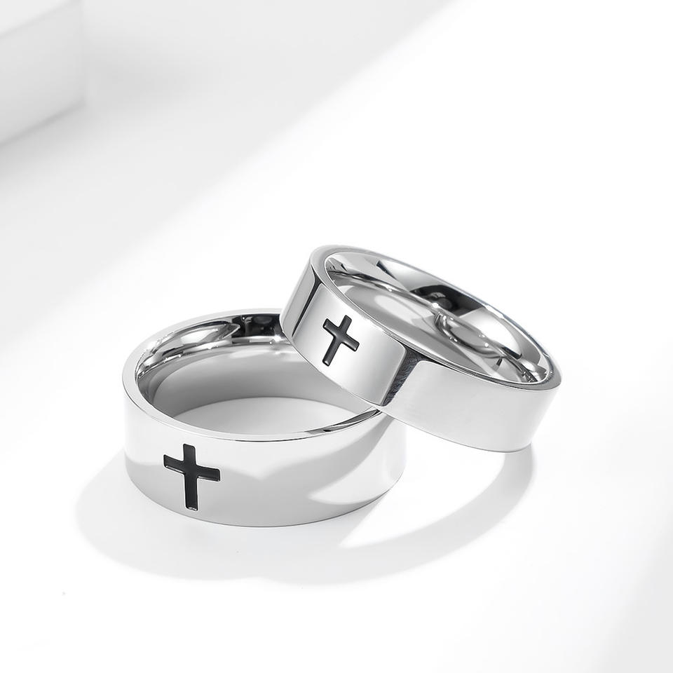 แหวนคู่รักไทเทเนียมสตีลรูปกากบาท ขนาด 6 มม. 8 มม. สำหรับผู้ชายและผู้หญิง