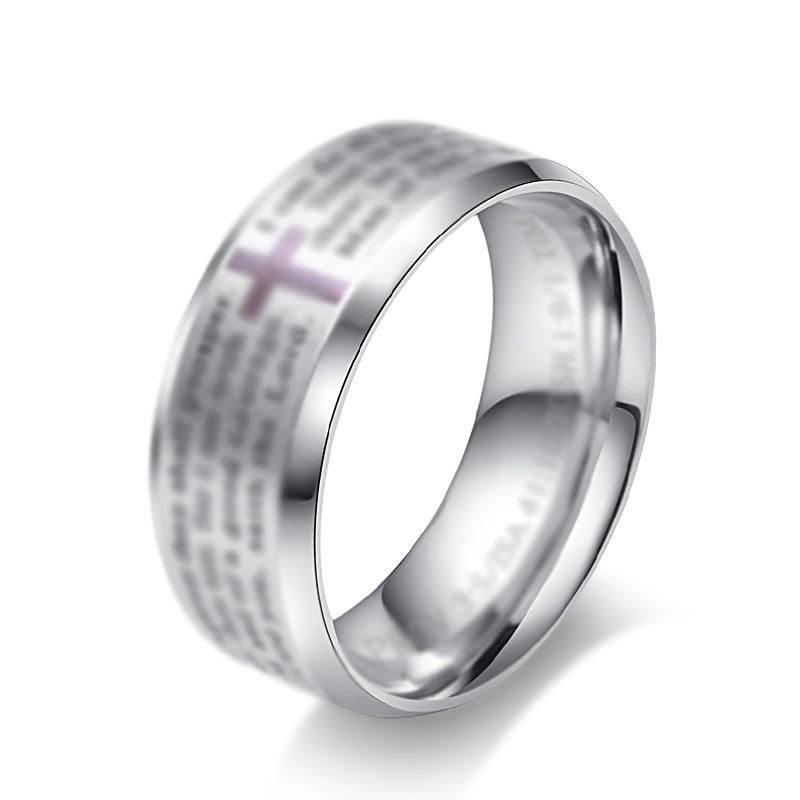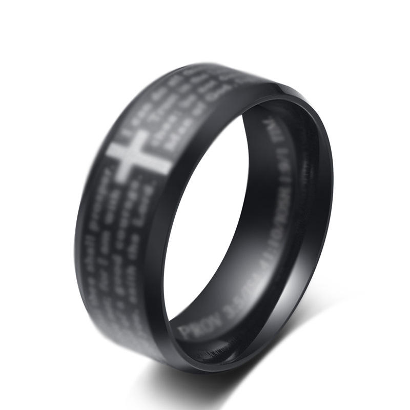 แหวนไทเทเนียมสตีลรูปกางเขน ของขวัญสำหรับทุกเพศทุกวัย เครื่องประดับเหล็กสีดำ สีทอง K R126