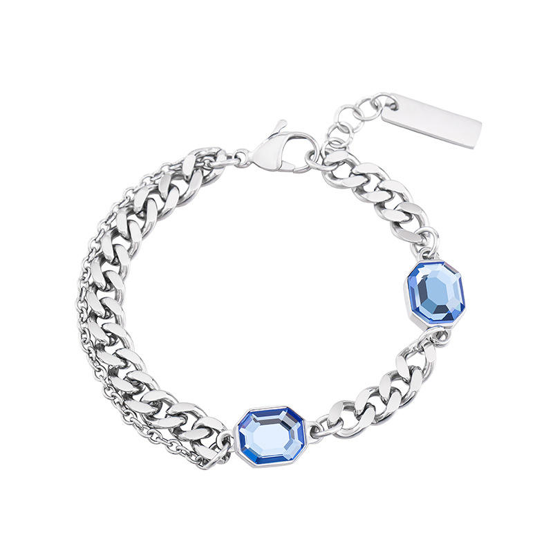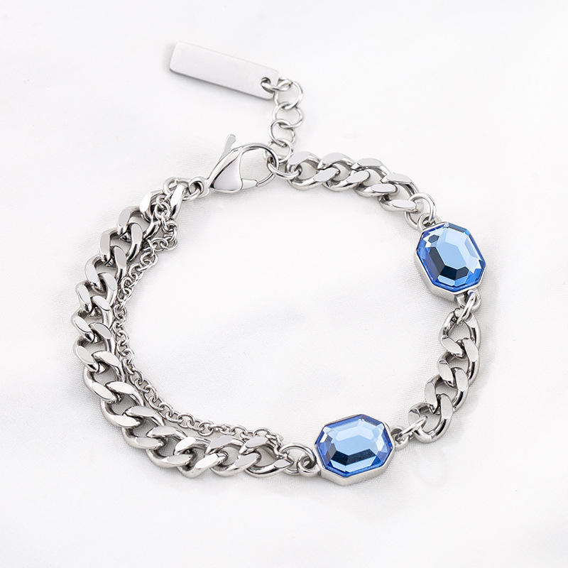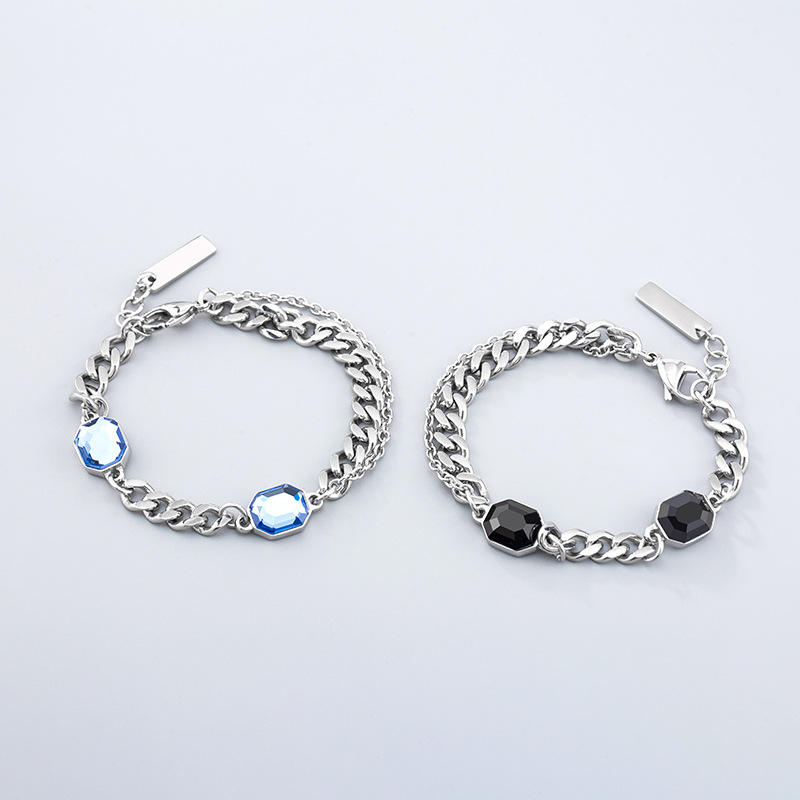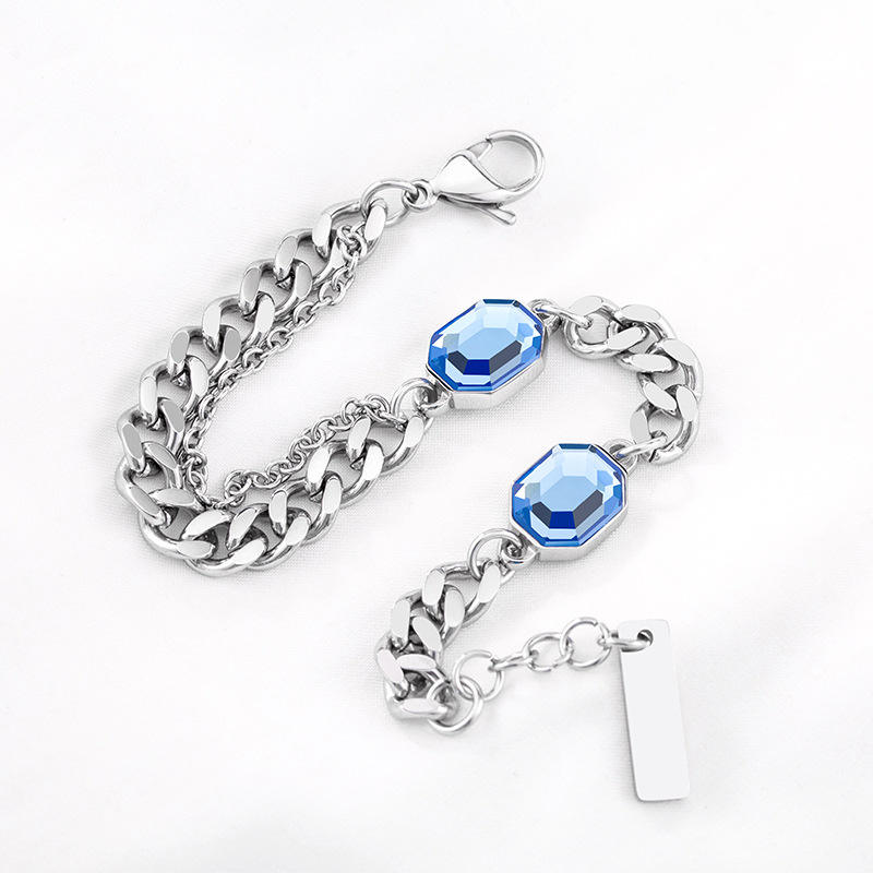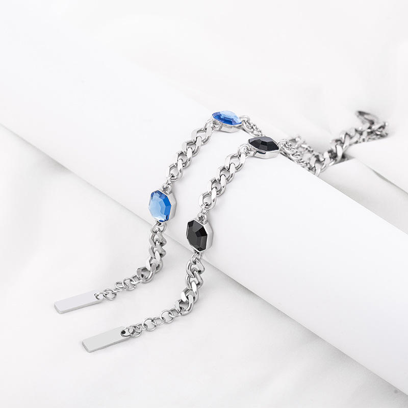 สร้อยข้อมือโซ่เหล็กไทเทเนียมทรงหกเหลี่ยมประดับคริสตัลสีน้ำเงินดำสำหรับใส่ทุกวัน