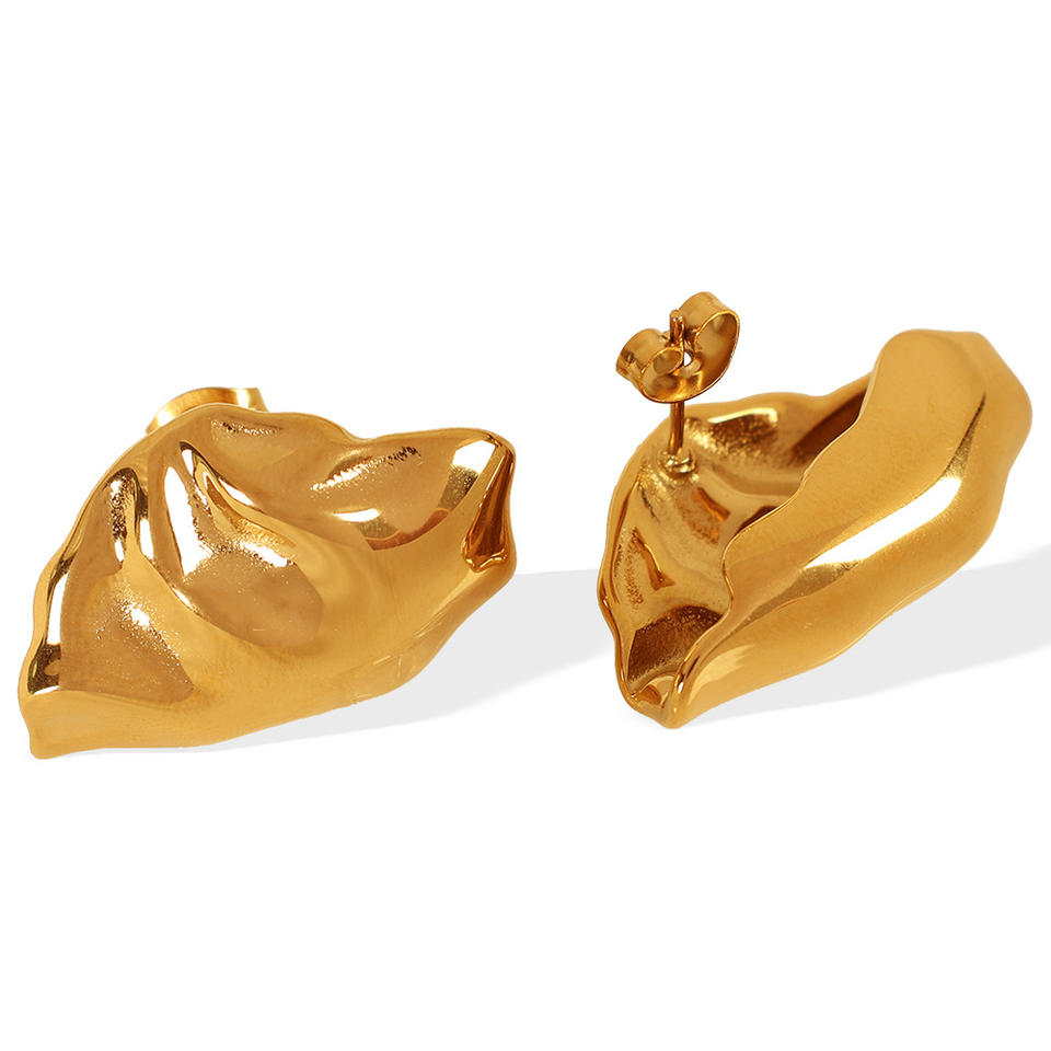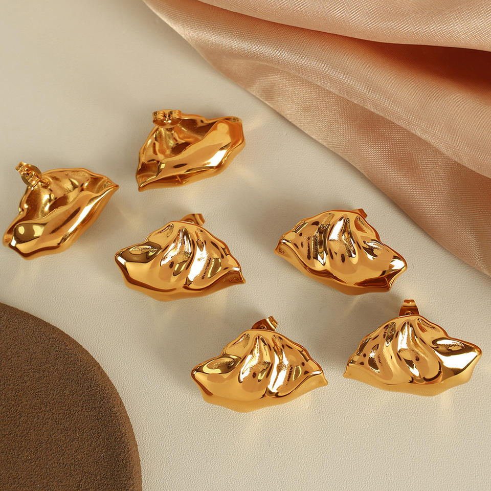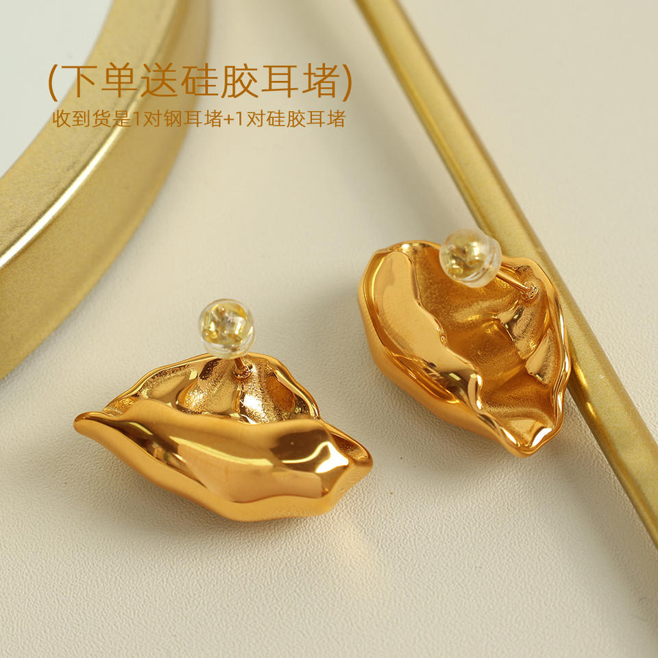 ต่างหูไทเทเนียมเหล็กทรงใบไม้สีทองรูปทรงไม่สม่ำเสมอ ดีไซน์เรียบง่ายสำหรับใส่ทุกวัน