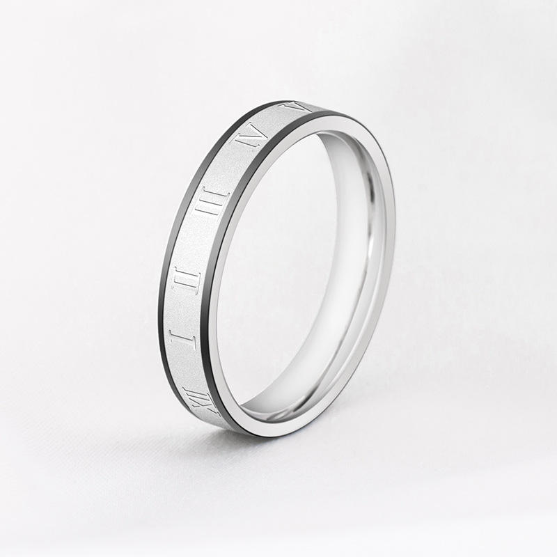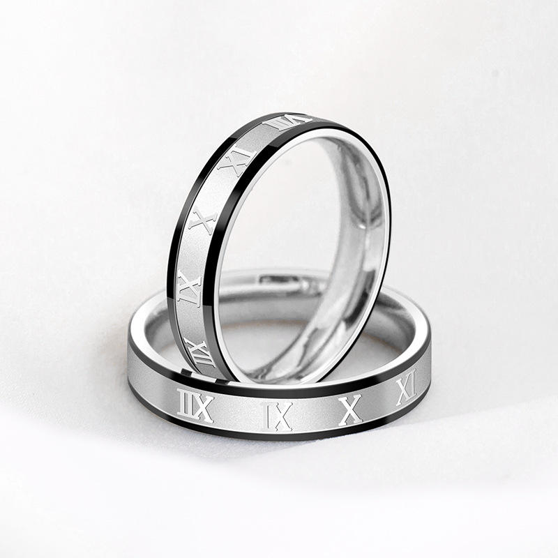 แหวนเหล็กไทเทเนียมตัวเลขโรมันสีดำแหวนคู่แต่งงานเครื่องประดับสำหรับทั้งชายและหญิง