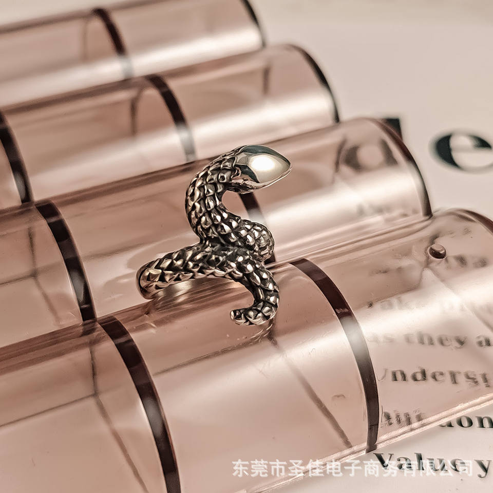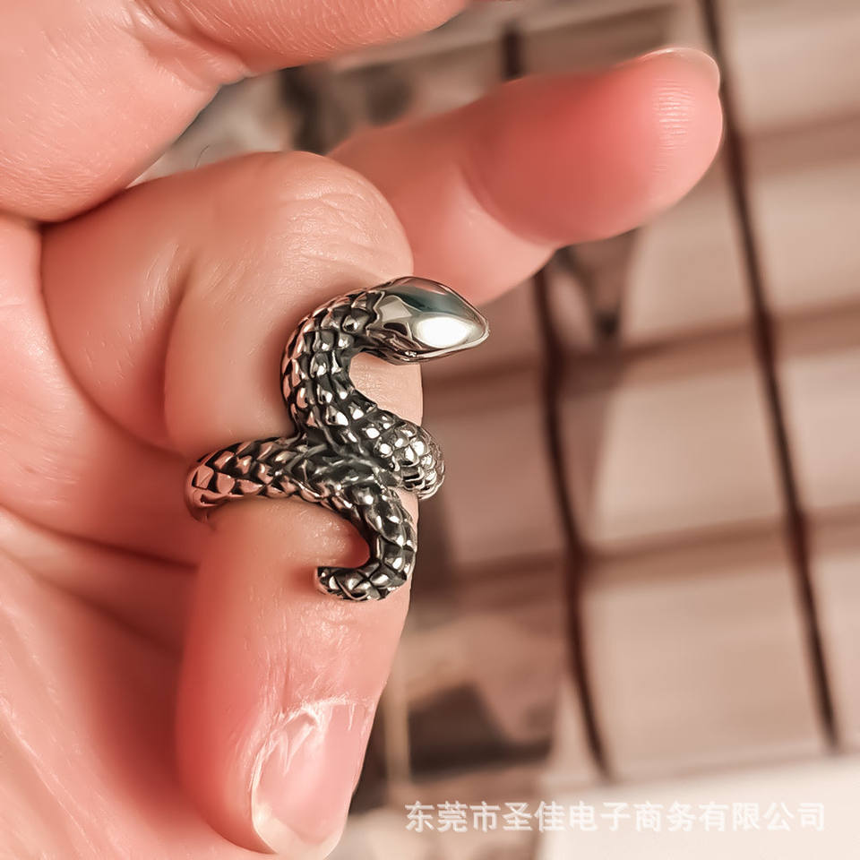 แหวนงูเหล็กไทเทเนียมสำหรับทุกเพศสไตล์พังค์เครื่องประดับสัตว์ SA299ของขวัญ