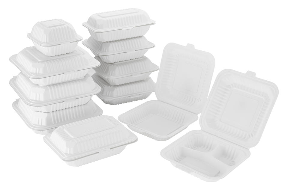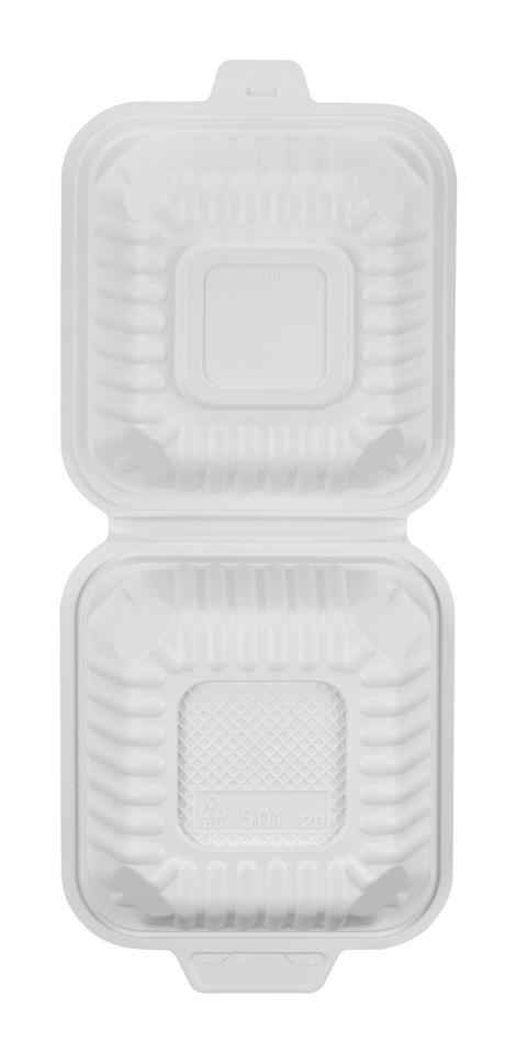 ภาชนะพลาสติกแบบฝาพับสีขาว