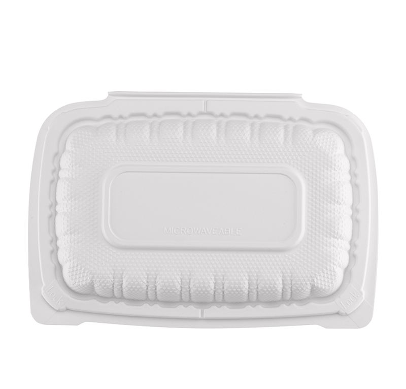 ภาชนะพลาสติกแบบมีบานพับสีขาว