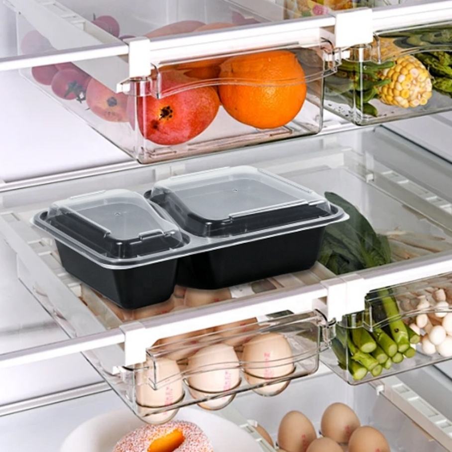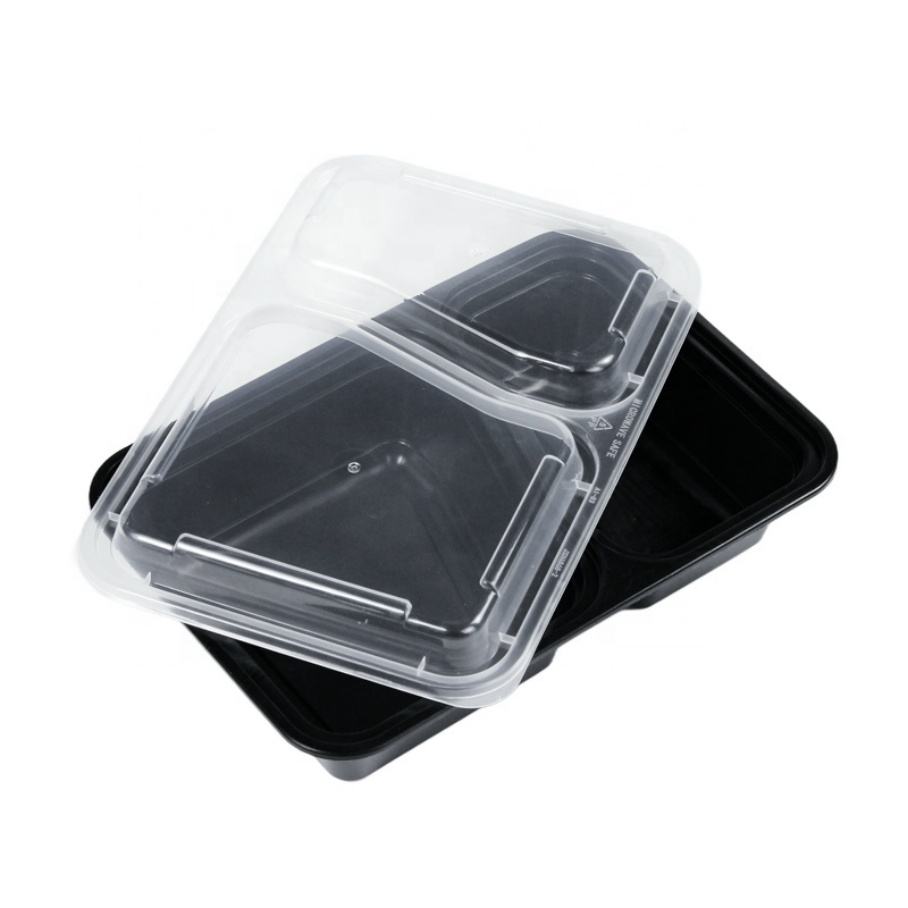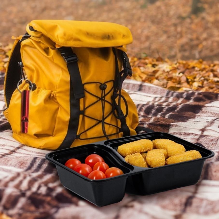 กล่องพลาสติกใส่อาหารแบบใช้แล้วทิ้ง 2 ช่อง ปลอดสาร BPA ใช้กับไมโครเวฟได้ รูปทรงสี่เหลี่ยมผืนผ้า สำหรับอาหารแบบนำกลับบ้าน