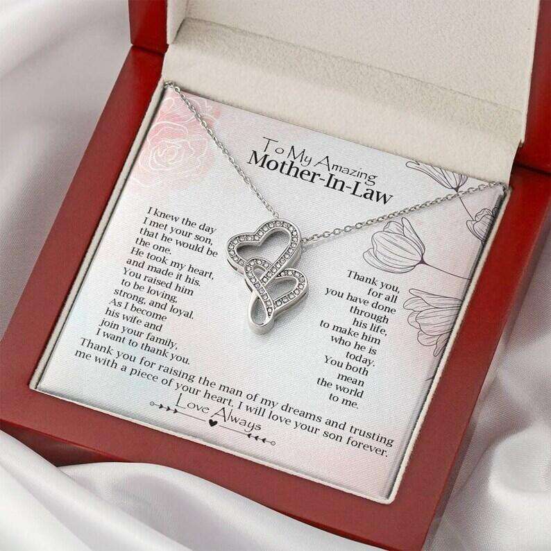 UIONEN สร้อยคอทองแดงสำหรับแม่สามีสุดน่ารัก พร้อมการ์ดข้อความแบบกำหนดเอง - จี้รูปหัวใจคู่ ของขวัญวันวาเลนไทน์สุดคลาสสิกเพื่อแสดงความขอบคุณ