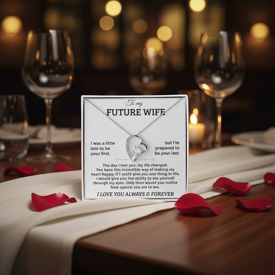 สร้อยคอจี้รูปหัวใจทองแดงสำหรับภรรยาในอนาคตของฉัน พร้อมการ์ดข้อความแบบกำหนดเอง ของขวัญสุดโรแมนติกคลาสสิกแบบส่วนตัวสำหรับคู่รัก