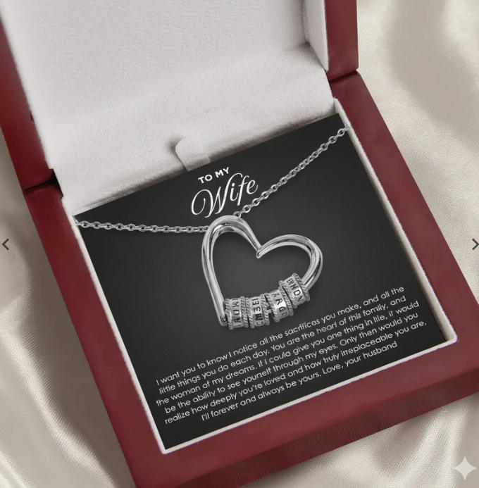 สร้อยคอจี้รูปหัวใจทองแดงสำหรับภรรยา พร้อมการ์ดข้อความแบบกำหนดเอง ลูกปัดสลักลาย ของขวัญสุดโรแมนติกแบบคลาสสิกสำหรับสามี UIONEN Casting