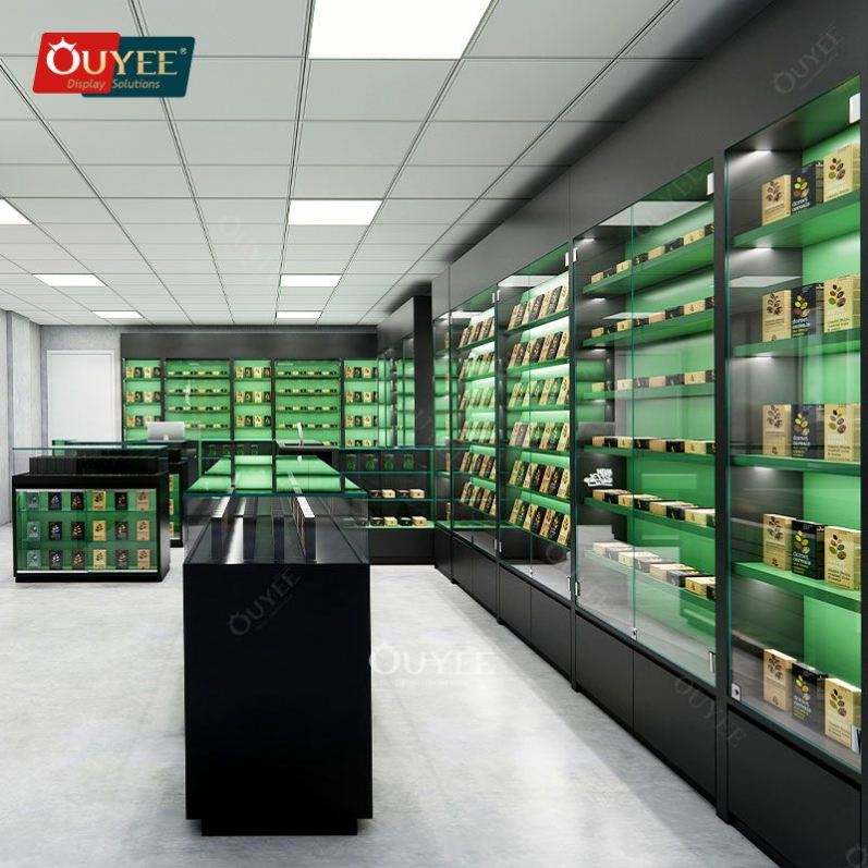 Tobacco Shop Furniture Glass Display Retail Showcase Rack Shelf Glass Smoke Shop Showroom Design Smoke Shop Display Rack