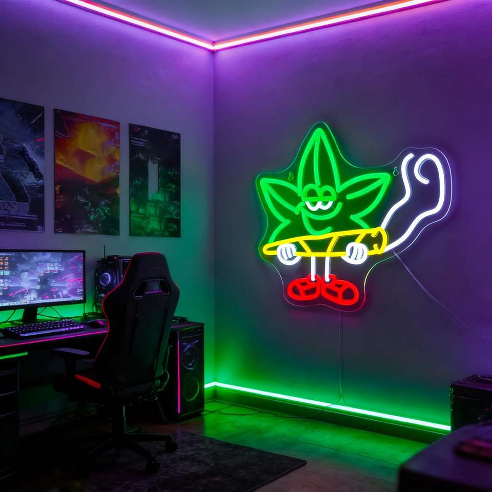 ป้ายไฟนีออน LED รูปใบยาสูบสีเขียว เหมาะสำหรับตกแต่งห้องนอน ห้องนั่งเล่น ห้องชาย บาร์ ห้องเกมส์ ของตกแต่งผนัง ของขวัญ