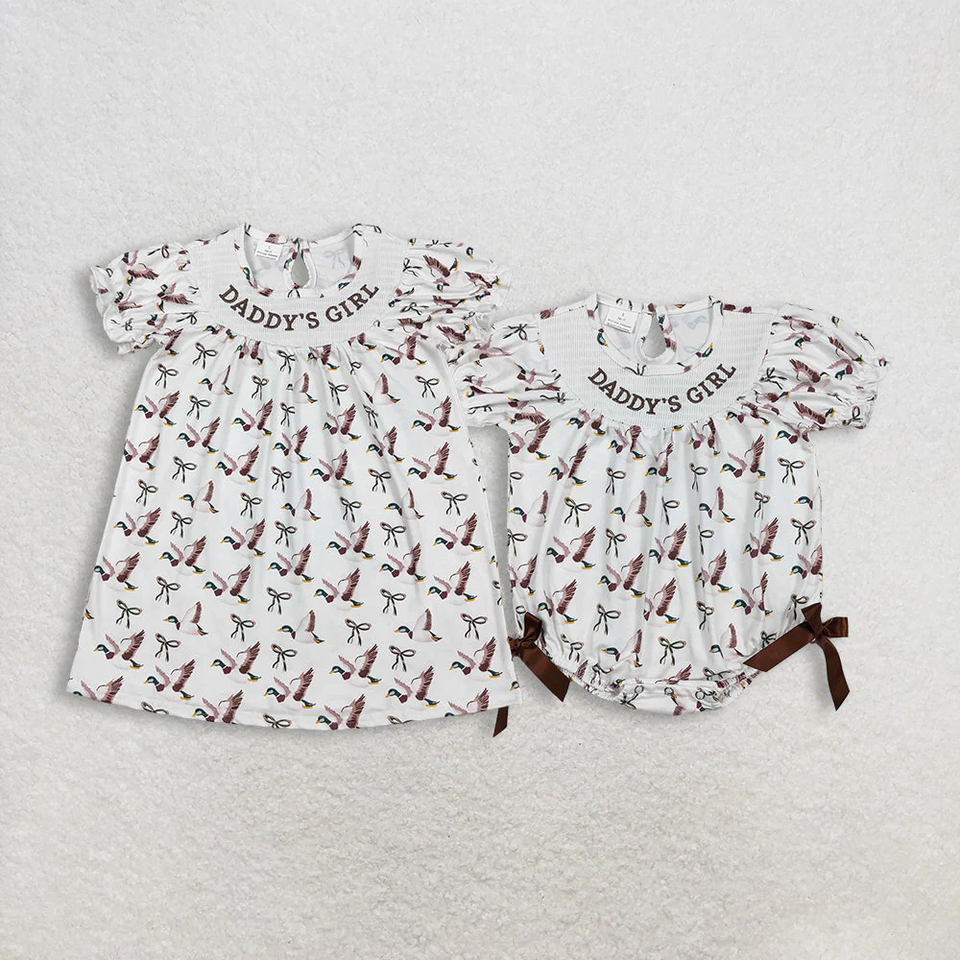 ชุดลำลองฤดูร้อนสำหรับเด็กผู้หญิงวัยหัดเดิน เสื้อยืดคอกลมแขนสั้นปักลายเป็ด + กางเกงขาสั้นลายสก๊อต ชุด 2 ชิ้น