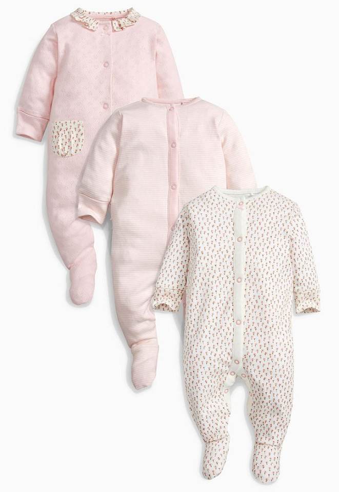 ชุดนอนเด็กอ่อนแขนยาวผ้าฝ้ายออร์แกนิคแบบเรียบ