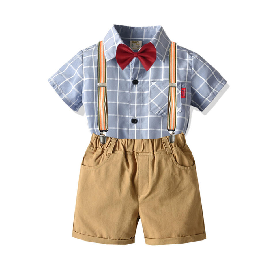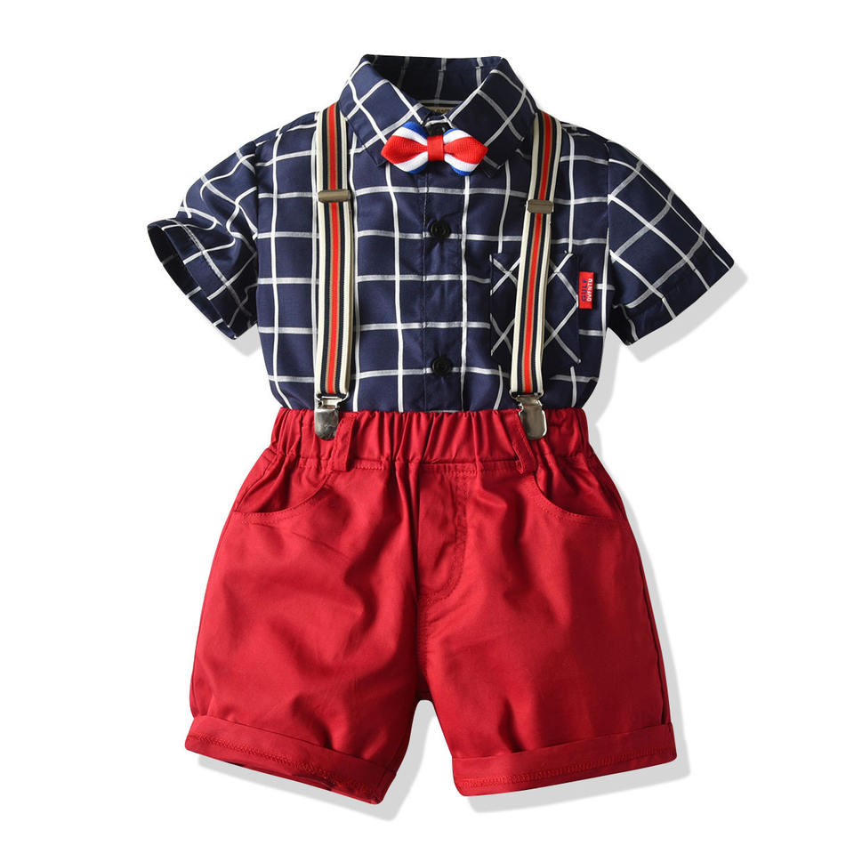 ชุดเสื้อแขนสั้นและกางเกงขาสั้นผ้าวอร์สต์ 100% ผ้าฝ้าย สำหรับเด็กผู้ชายวัยเตาะแตะ สไตล์สเปน สำหรับฤดูร้อน