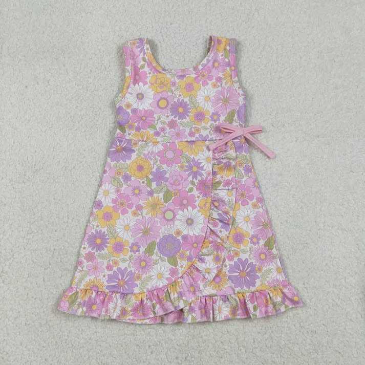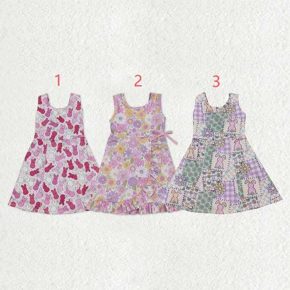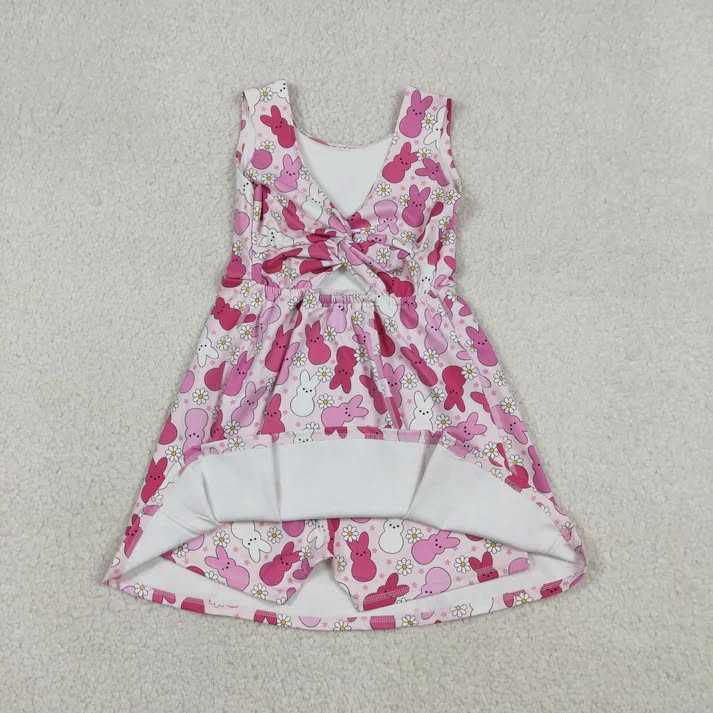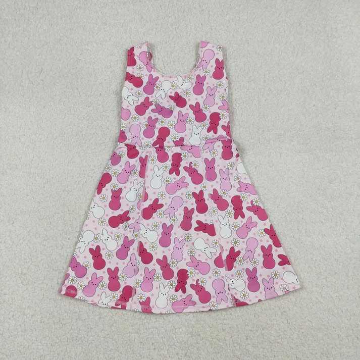 ชุดเดรสเด็กผู้หญิงวัยหัดเดิน ชุดโยคะลายกระต่ายอีสเตอร์และลายดอกไม้ ชุดเดรสแขนกุดสำหรับฤดูร้อนความยาวระดับเข่า