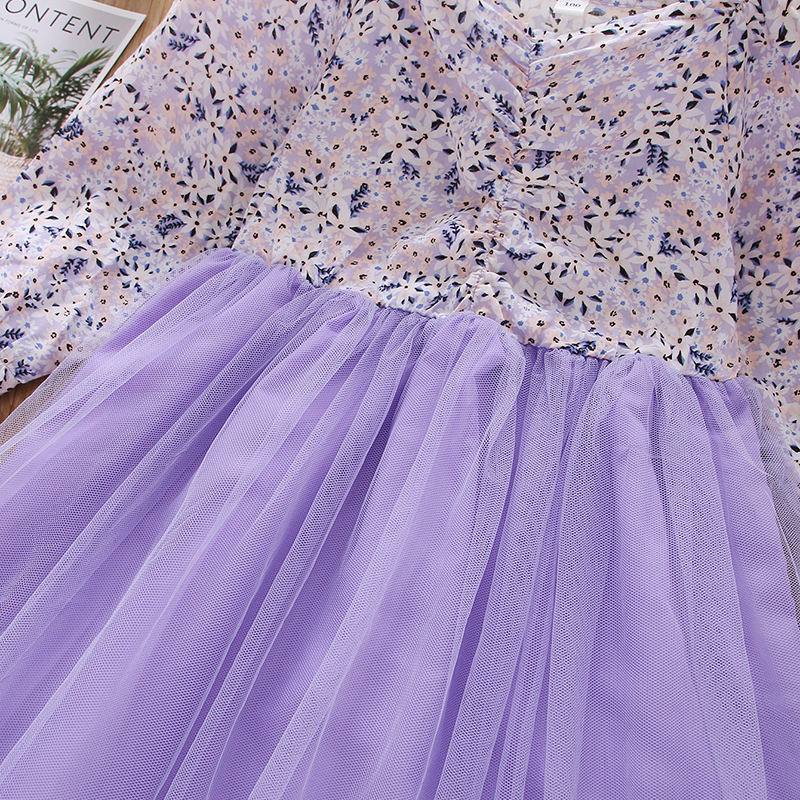 เด็กผู้หญิงวัยเตาะแตะ ชุดเดรสลายดอกไม้ แต่งระบายชายผ้าตาข่าย เสื้อผ้าเด็กผู้หญิงลายดอกไม้