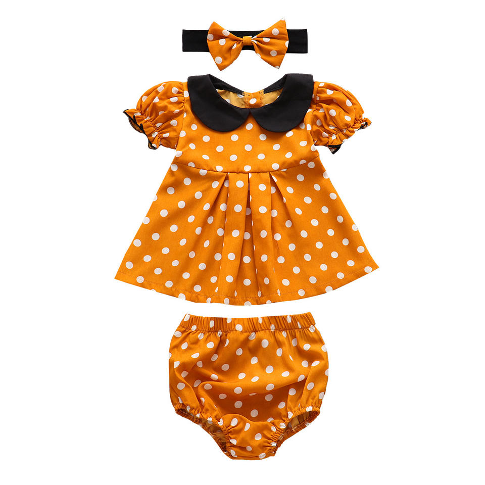 ชุดเดรสเด็กผู้หญิงแขนสั้นลายฟักทองพร้อมกางเกงชั้นใน