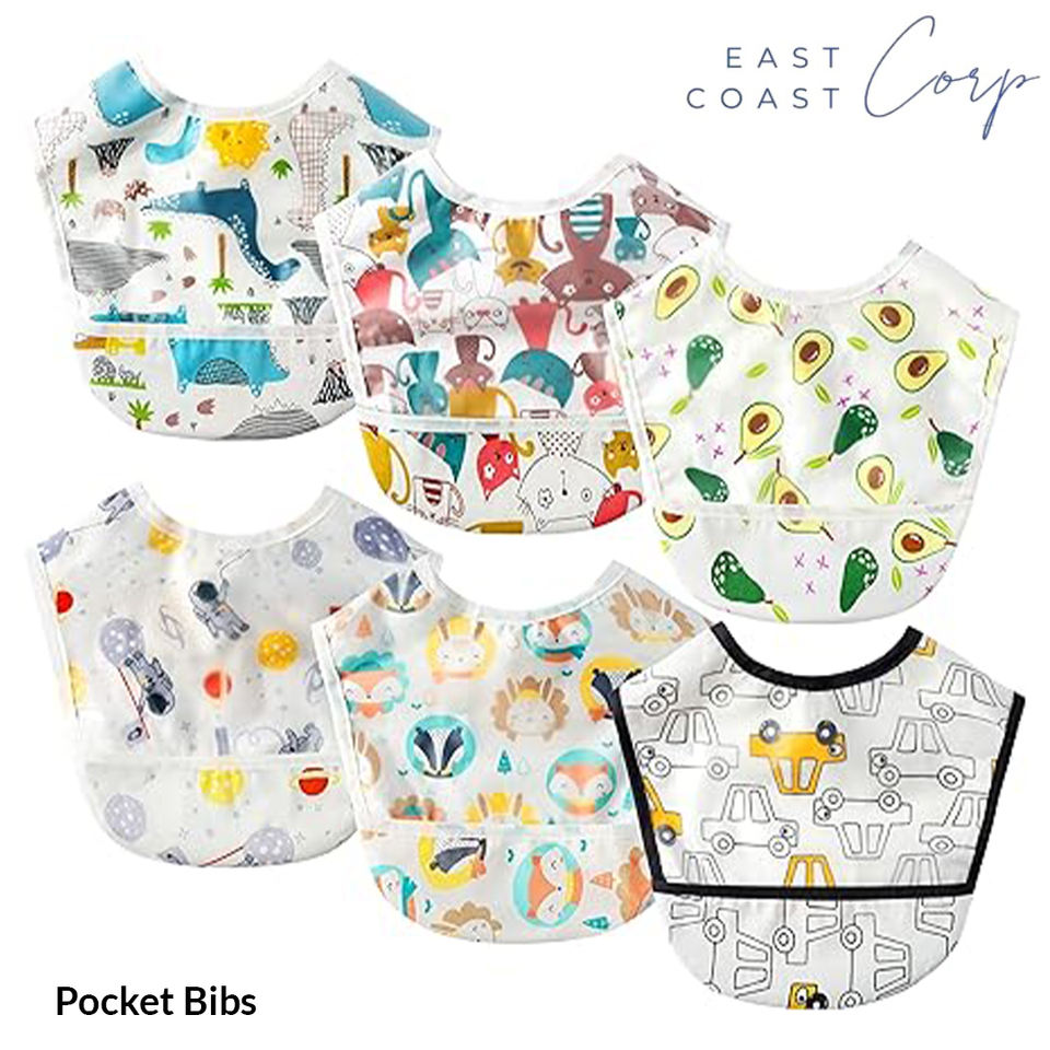ชุดผ้ากันเปื้อนสำหรับเด็กวัยหัดเดินแบบกันน้ำพร้อมช่องเก็บเศษของทารกผ้ากันเปื้อนสำหรับกัดอาหารสำหรับเด็กทารกแบบปรับได้