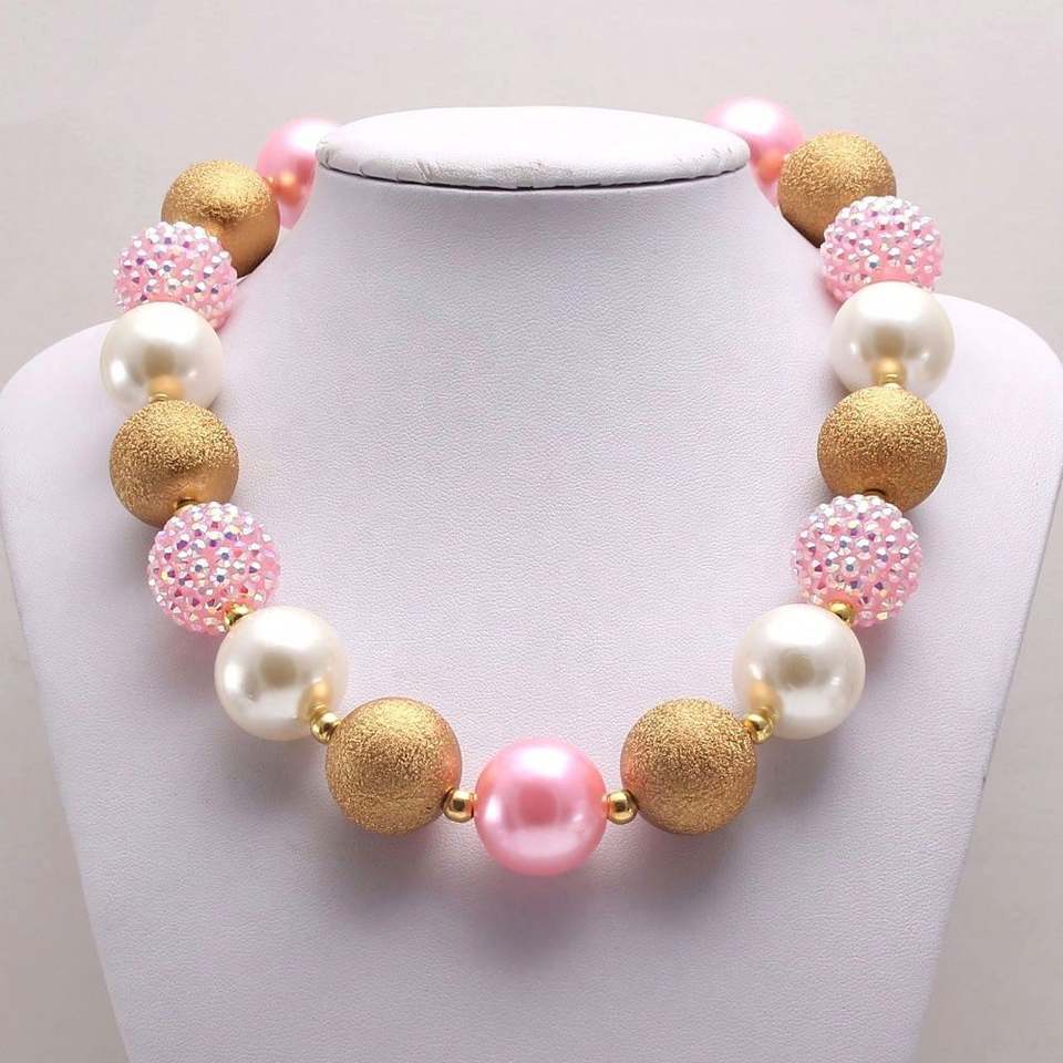 สร้อยคอเจ้าหญิงลูกปัดสีชมพูและทองสำหรับเด็กวัยหัดเดินเครื่องประดับคริสต์มาสสำหรับเด็กผู้หญิงตัวเล็ก