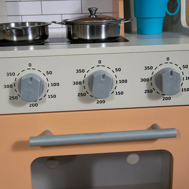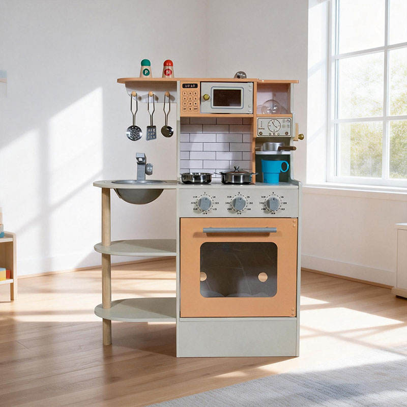 ชุดครัวไม้สำหรับเด็กเล็ก พร้อมหม้อ กระทะ และอุปกรณ์เสริมสำหรับเล่นทำอาหาร