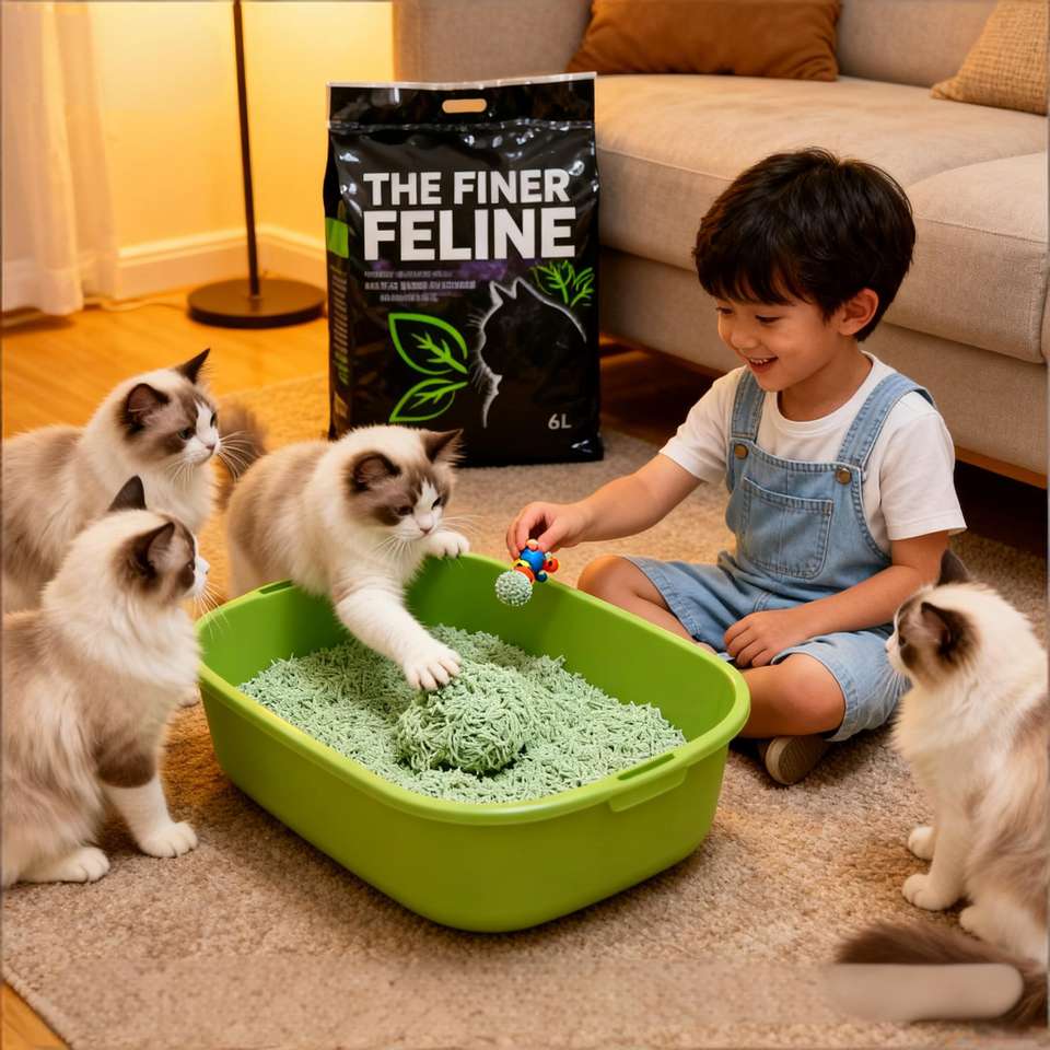 ถาดทรายแมวเต้าหู้พร้อมไม้สน แป้งข้าวโพด ถ่านกัมมันต์ ย่อยสลายได้ เป็นมิตรกับสิ่งแวดล้อม ใช้กับโถสุขภัณฑ์ได้ ไม่ก่อให้เกิดก้อนอุดตัน