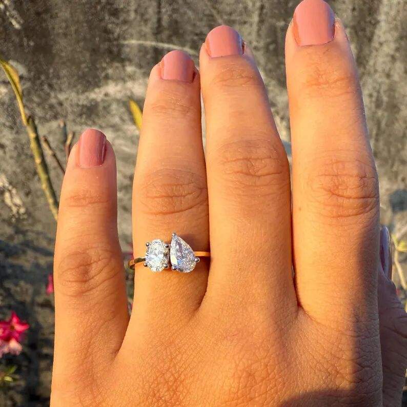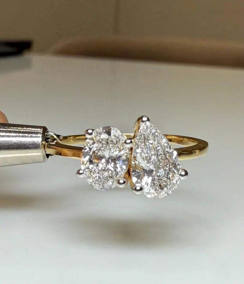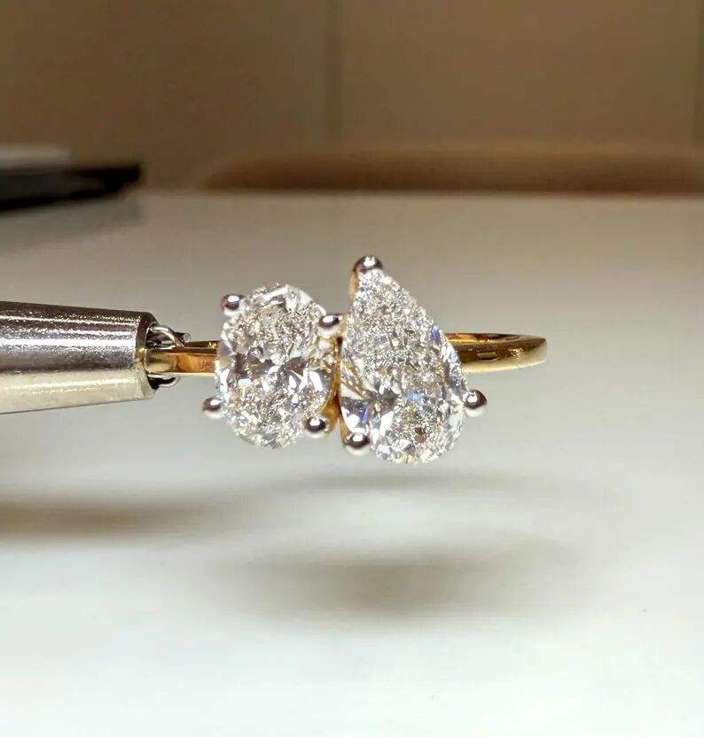 แหวนแต่งงานเพชรทรงลูกแพร์สองเม็ดทองคำสำหรับผู้หญิง Toi Et Moi เพชรเพาะเลี้ยง ได้รับการรับรองจาก IGI หรูหราแบบมินิมอล ทันสมัย