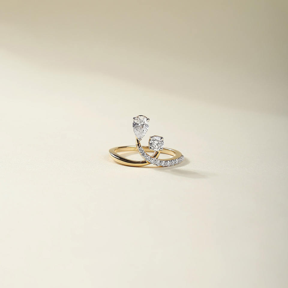 Toi et Moi ลูกแพร์ & กลมตัดต้นฉบับในห้องปฏิบัติการปลูกเพชรแหวนหมั้นของผู้หญิงบิดเป็นสัญลักษณ์ของความงามสำหรับโอกาสต่างๆ-DS0595