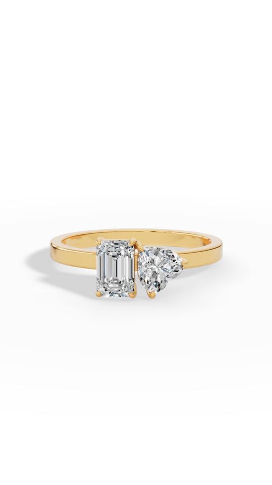 Toi et Moi แหวนที่มีหัวใจและมรกตตัดเพชรที่ปลูกในห้องปฏิบัติการทองคำ10K ขายส่งผู้ผลิตเครื่องประดับ