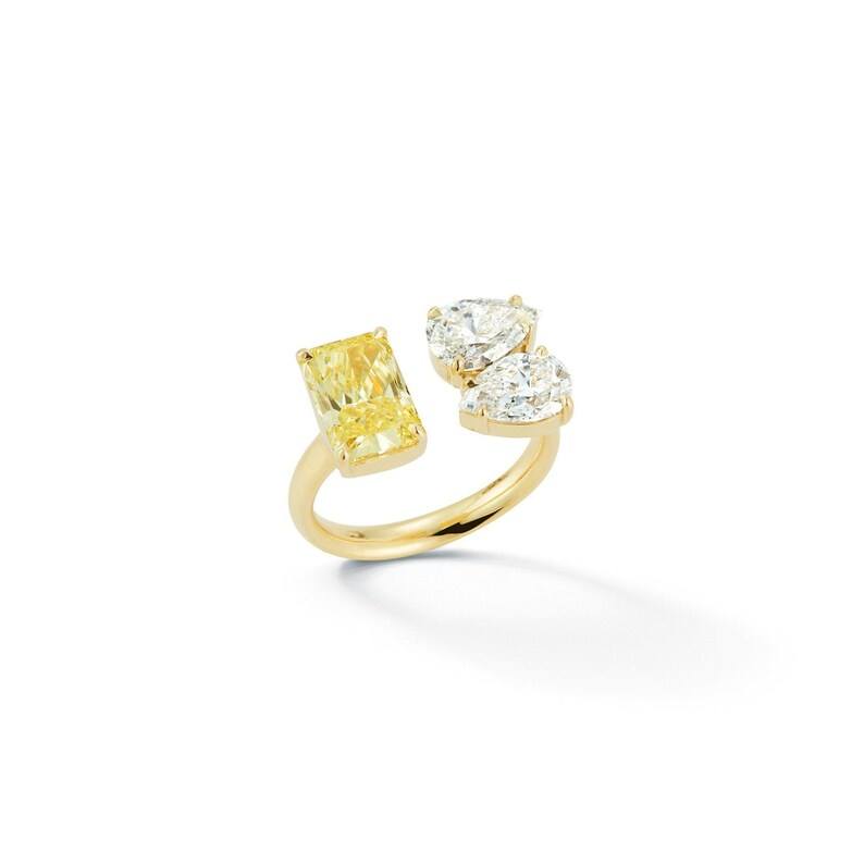 แหวนสัญญาเพชรรูปลูกแพร์และมรกตสีเหลือง