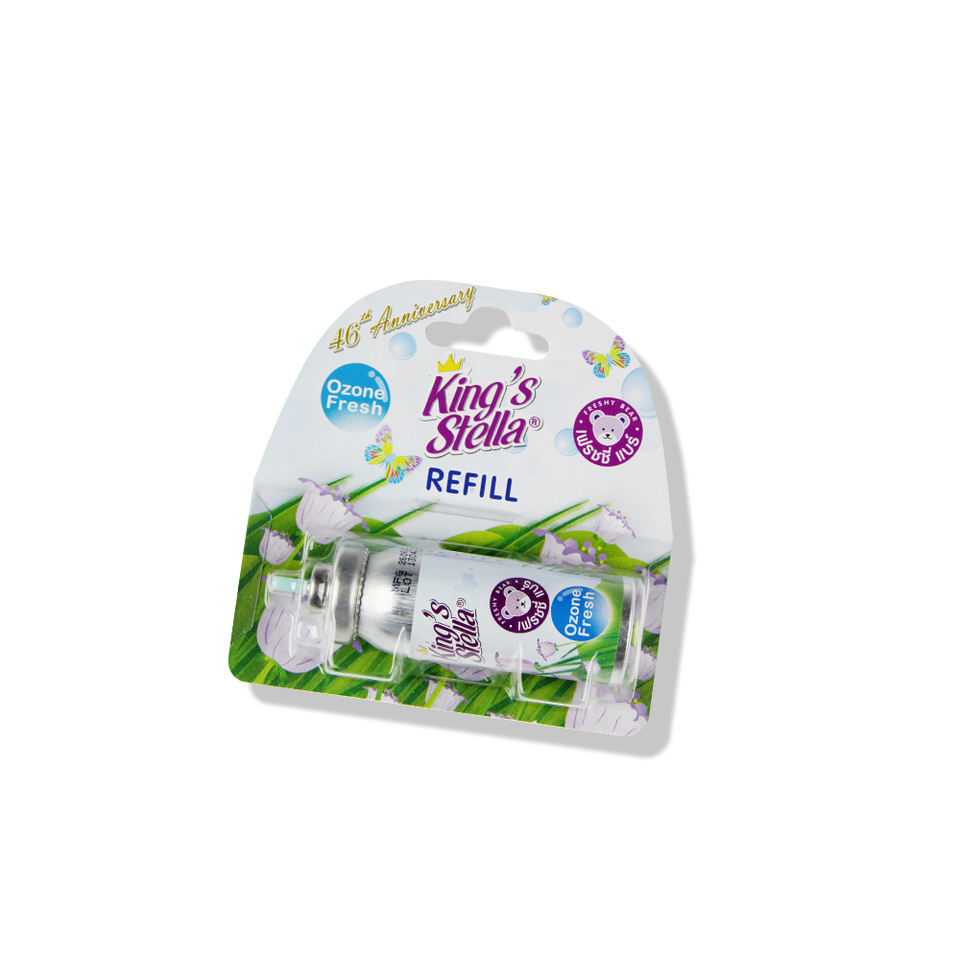 สเปรย์ปรับอากาศแบบแห้ง กลิ่นโอโซนสดชื่น รีฟิล 15 มล. ตราคิงส์ สเตลล่า อีโค-เฟรนด์ลี่ เฟรชชี่ แบร์ ผลิตในประเทศไทย