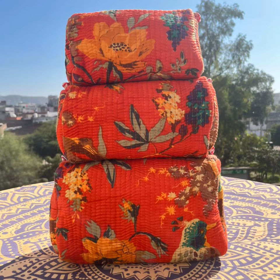 Toiletry Bag With Zipper & Floral Printed Design Multi Purpose Bag Travel Bag Versatile 3-Piece Set Quilted For Everyday Use