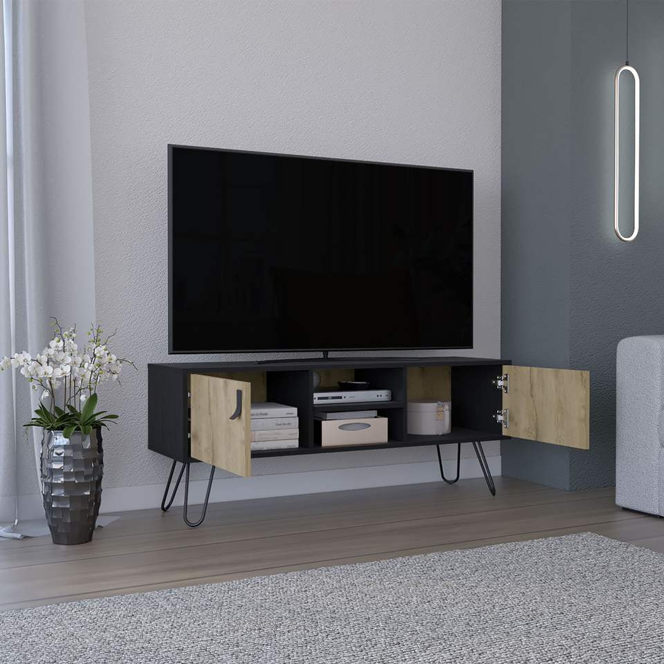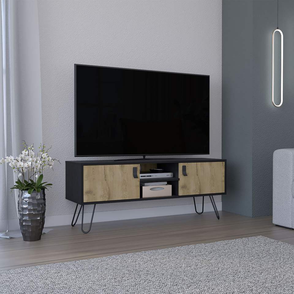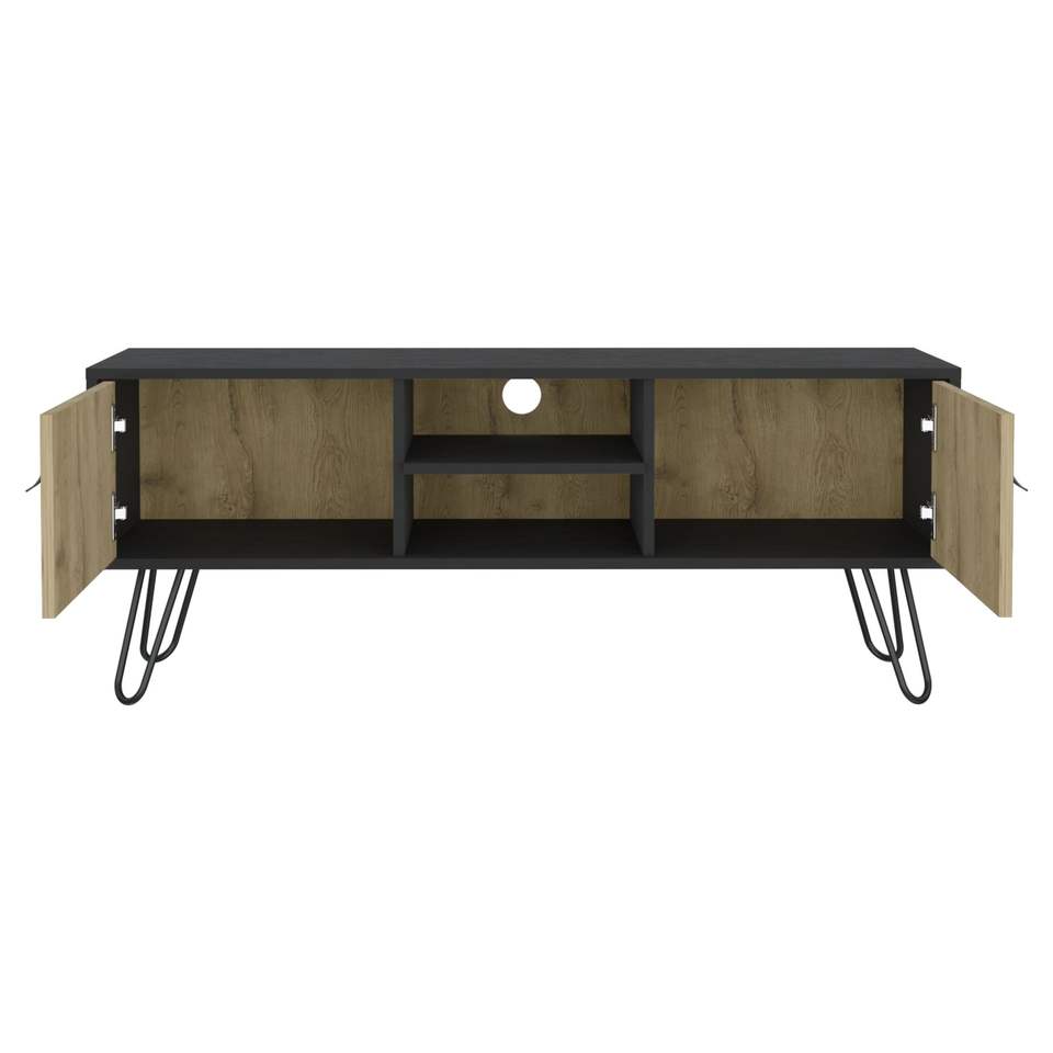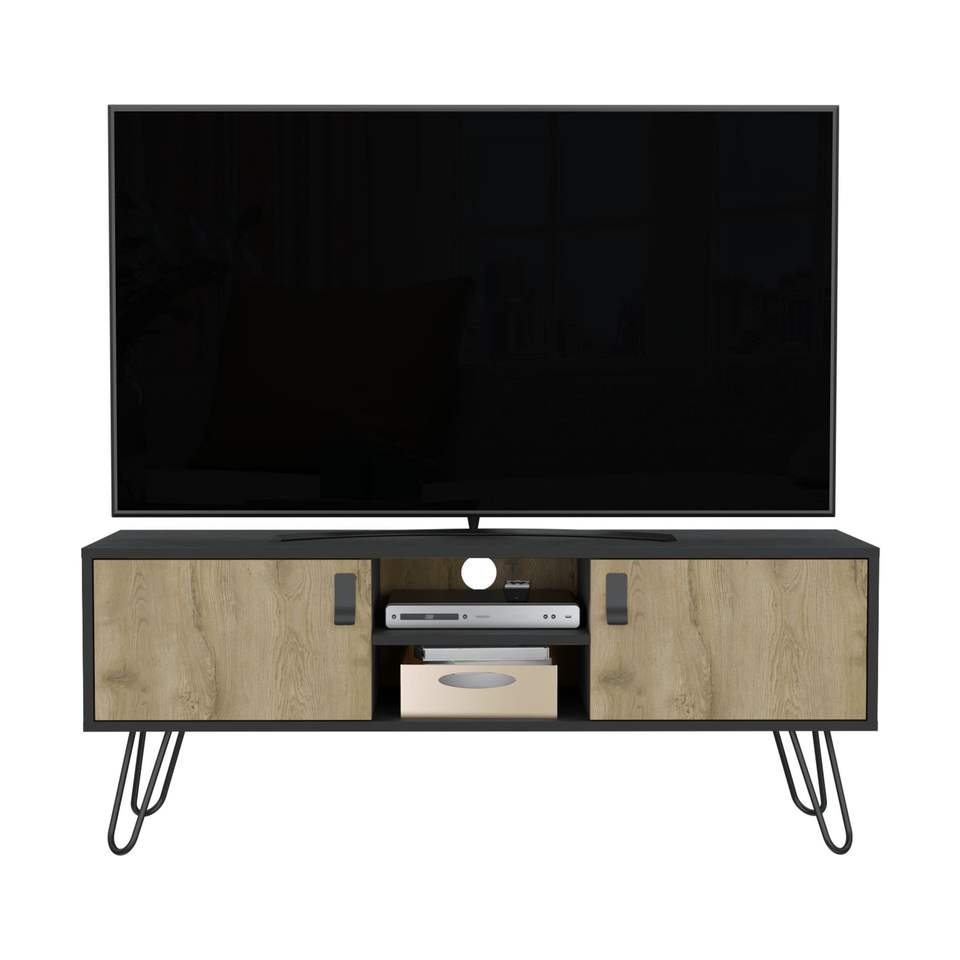 Toka 2-Door Black/Macadamia TV Stand with Media Center and Hairpin Legs Hairpin Legs