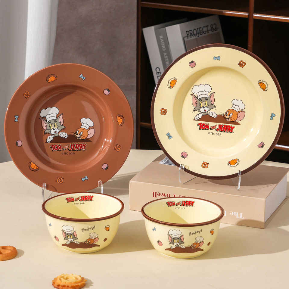 ชุดชามและจานเซรามิกทอมแอนด์เจอร์รี่ ขนาด 8 นิ้ว ทรงกลม ทำจากพอร์ซเลน ลายการ์ตูน สำหรับเด็ก ใช้สำหรับรับประทานอาหารที่บ้าน