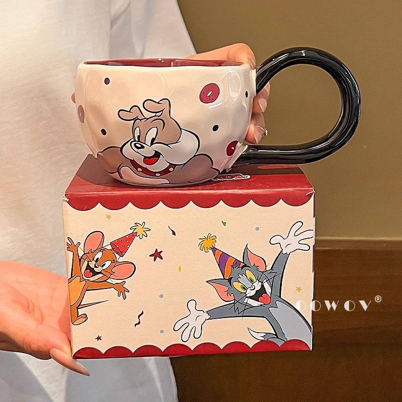 แก้วเซรามิกทอมแอนด์เจอร์รี่พร้อมหูจับ ดีไซน์การ์ตูน สำหรับกาแฟ ชา อาหารเช้า ใช้แก้วเดี่ยว บรรจุกล่องของขวัญ