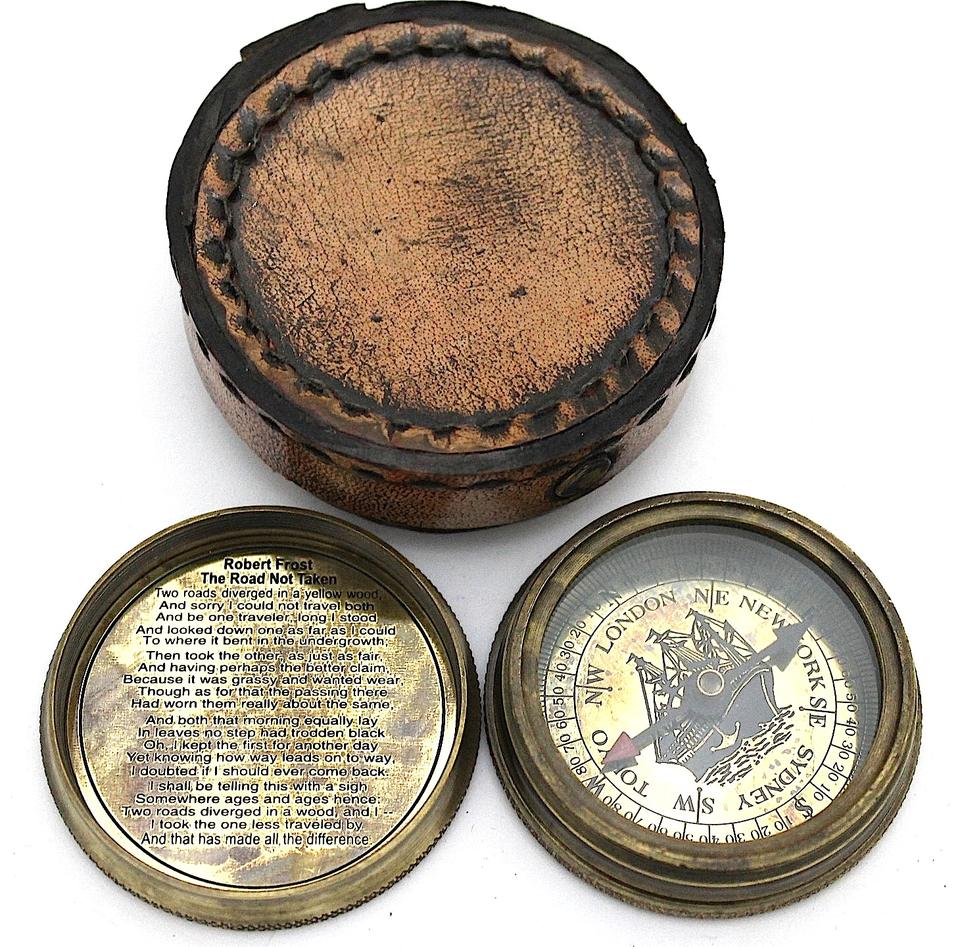 TOM Cook เคสหนังพรีเมี่ยม, เคสทองเหลืองโบราณเข็มทิศทะเลอเนกประสงค์กลางแจ้งกีฬาเดินป่ามีสลักตัวชี้