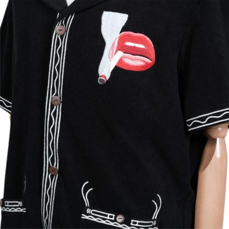 TOM wesselmann เสื้อคาบาน่า #1, เสื้อเทอร์รี่สีดำ1967งานศิลปะที่โดดเด่นปักลายสไตล์ยูนิเซ็กส์กระดุมมะพร้าว