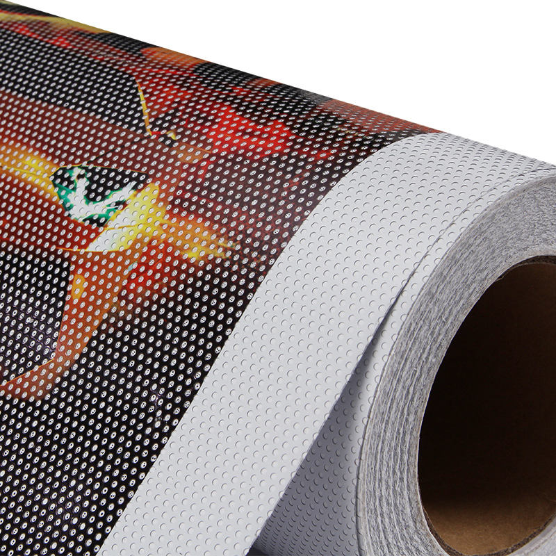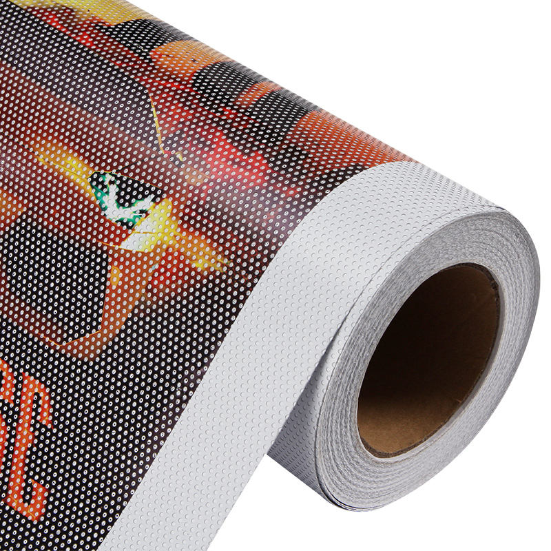 สติกเกอร์ใสแบบเจาะรูสำหรับติดกระจก ป้องกันความร้อน วัสดุไวนิลแบบมองเห็นได้ทางด้านเดียว สำหรับงานพิมพ์โปสเตอร์