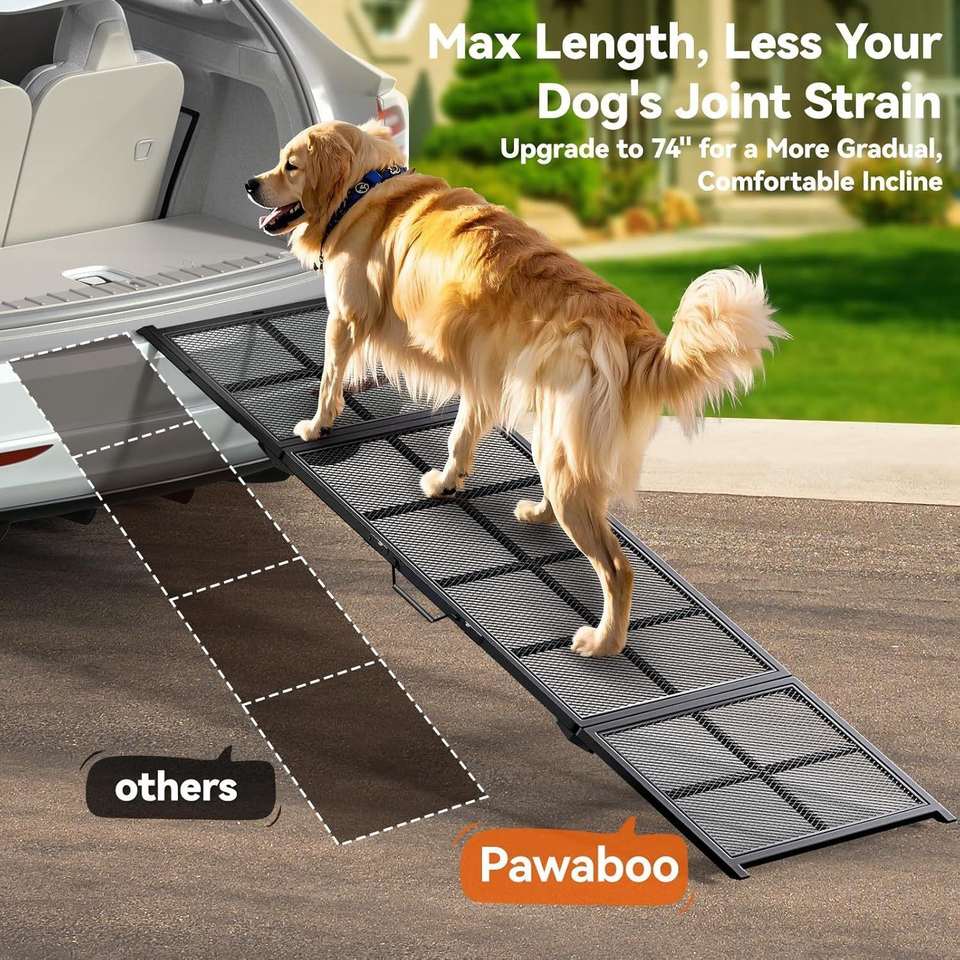 Tompo บันไดสุนัขบันไดสเตนเลสแบบพกพาพับได้สำหรับสัตว์เลี้ยงบันไดสุนัขสำหรับสุนัขขึ้นรถ