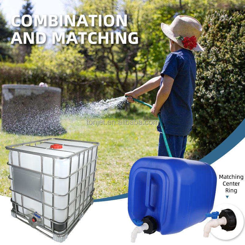 ชุดก๊อกน้ำ Tonjet IBC พร้อมวาล์วบอลแบบแมนนวล ขนาด S60x6 ถึง 3/4 นิ้ว พร้อมอะแดปเตอร์เกลียวใน สำหรับถังเก็บน้ำ 1 ชิ้น