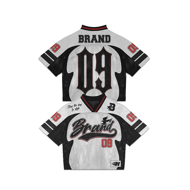 เสื้อเจอร์ซีย์อเมริกันฟุตบอลย้อนยุคเสื้อครอปผ้าตาข่ายแบบระเหิดทีมกีฬาสั่งทำคุณภาพสูง