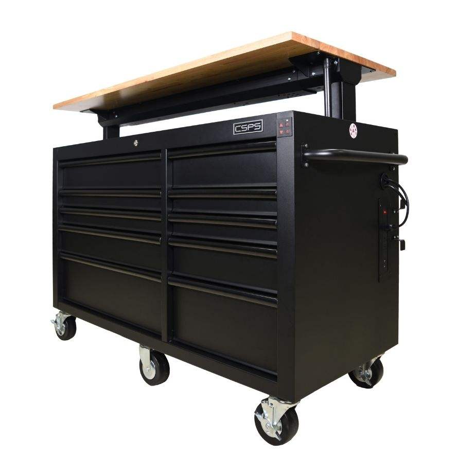 ตู้เก็บเครื่องมือสีดำขนาด142ซม. 10ลิ้นชักสำหรับช่างโรงรถตู้เก็บเครื่องมือโรงรถปราศจากสารตะกั่ว